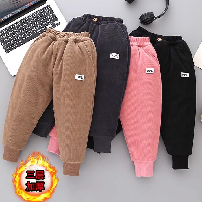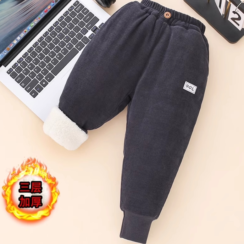 男童加绒加厚裤子冬季外穿保暖防寒儿童一条过冬休闲裤宝宝棉裤冬