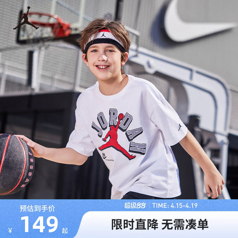 JORDAN童装2026夏季新款男童短袖T恤经典耐克AJ中大童JD2332003