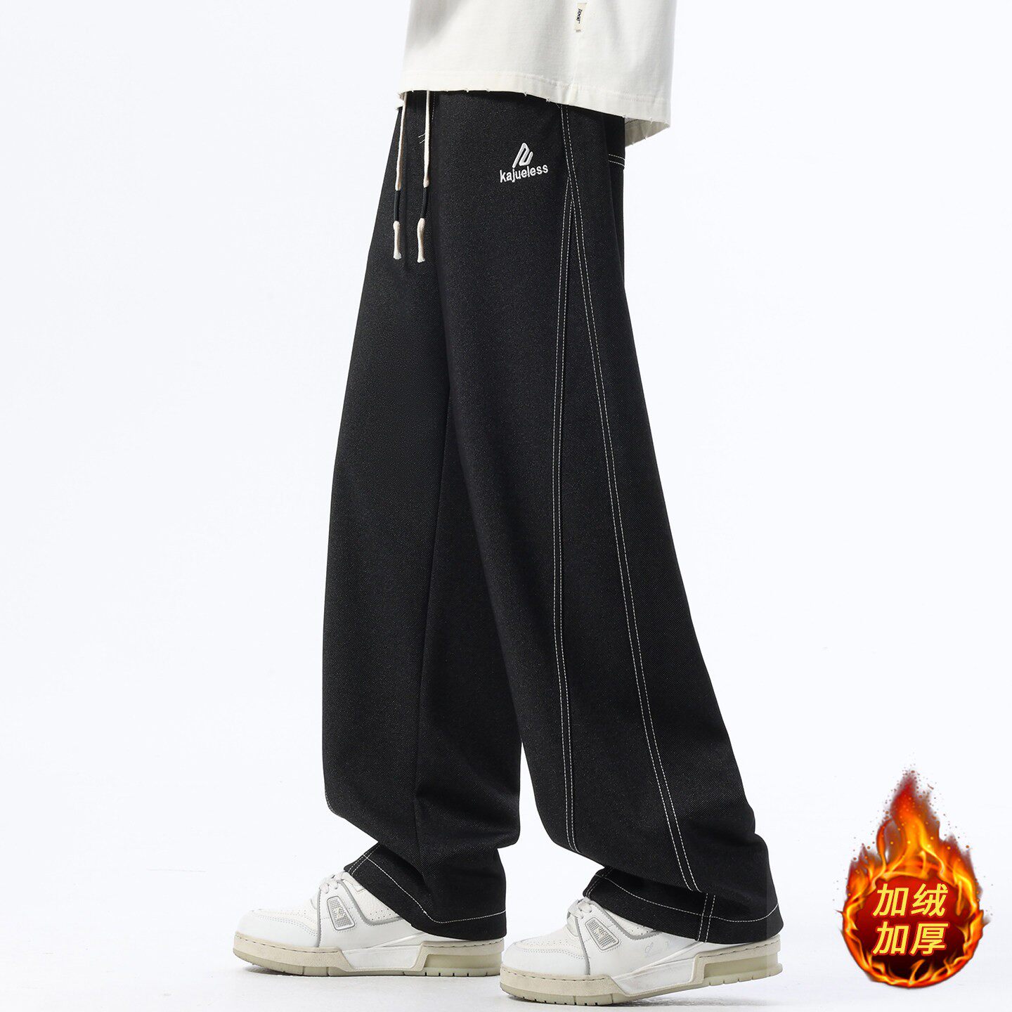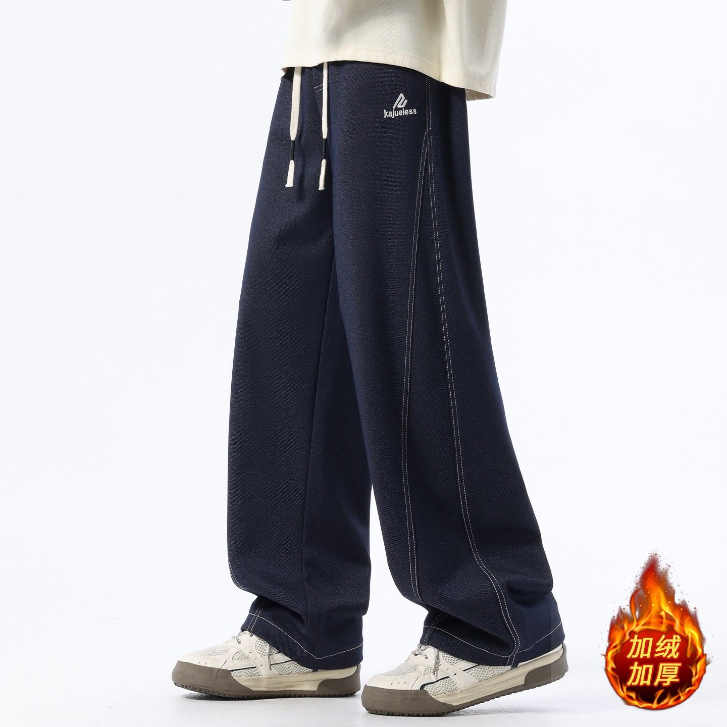 秋冬季新款牛仔长裤子男生青少年初中高中学生加绒加厚直筒休闲裤