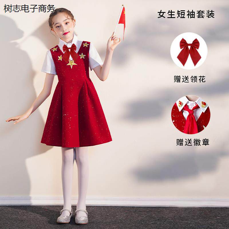 六一儿童节红色爱国朗诵合唱演出服中小学生男女童演讲比赛礼服装