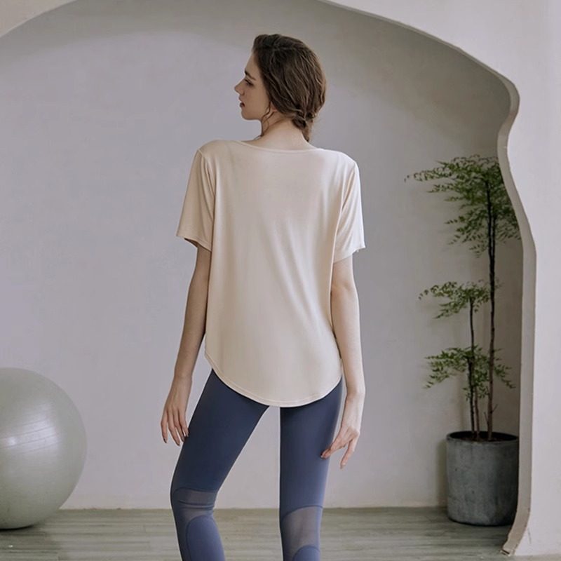 瑜伽服套装女夏外穿宽松显瘦运动罩衫普拉提训练健身速干短袖T恤