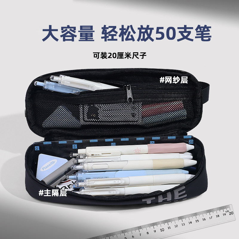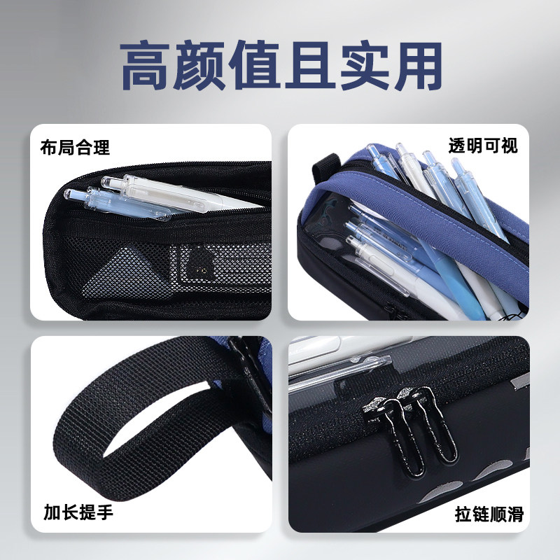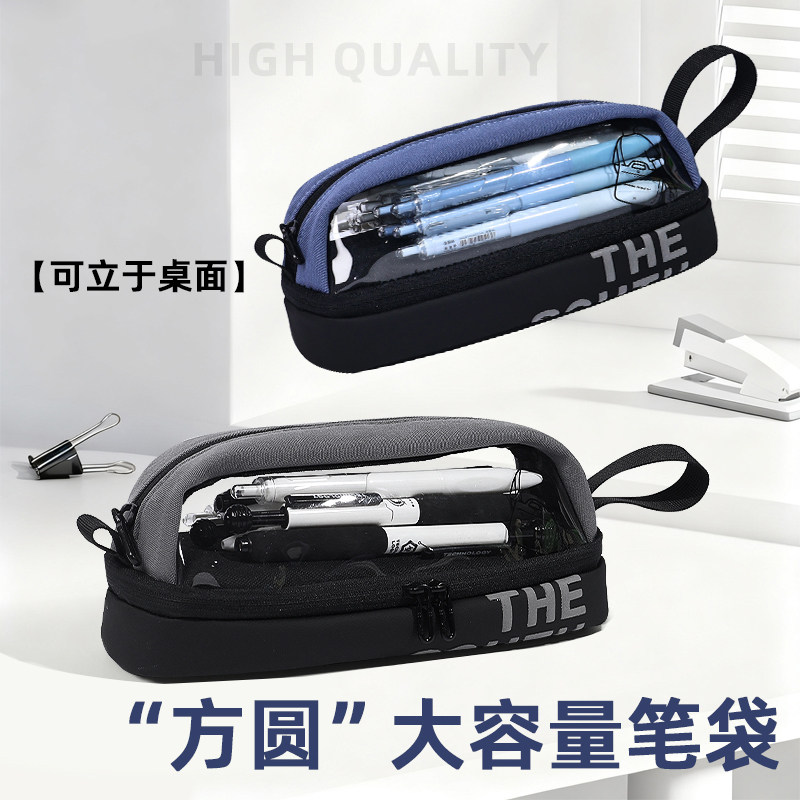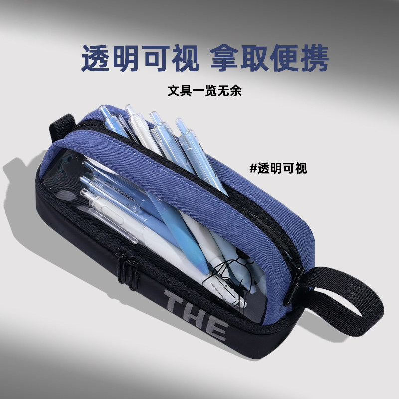 太空舱双面透明笔袋男孩2026新款大容量初中生高中简约黑色铅笔盒耐脏文具盒高颜值ins风小众不撞款