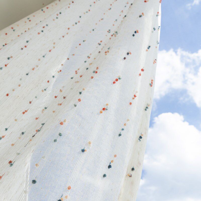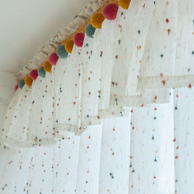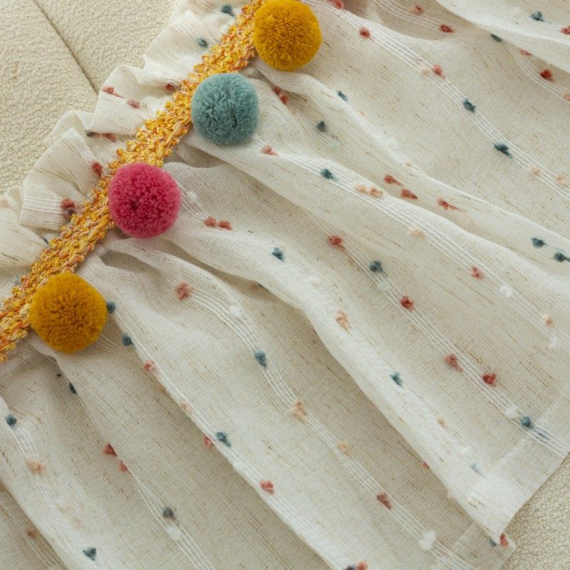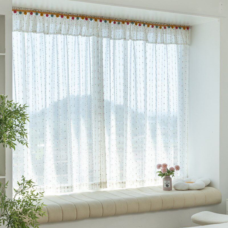 ins风儿童房免安装自粘帘头条纹豆豆窗纱窗幔魔术贴防尘帘遮丑帘