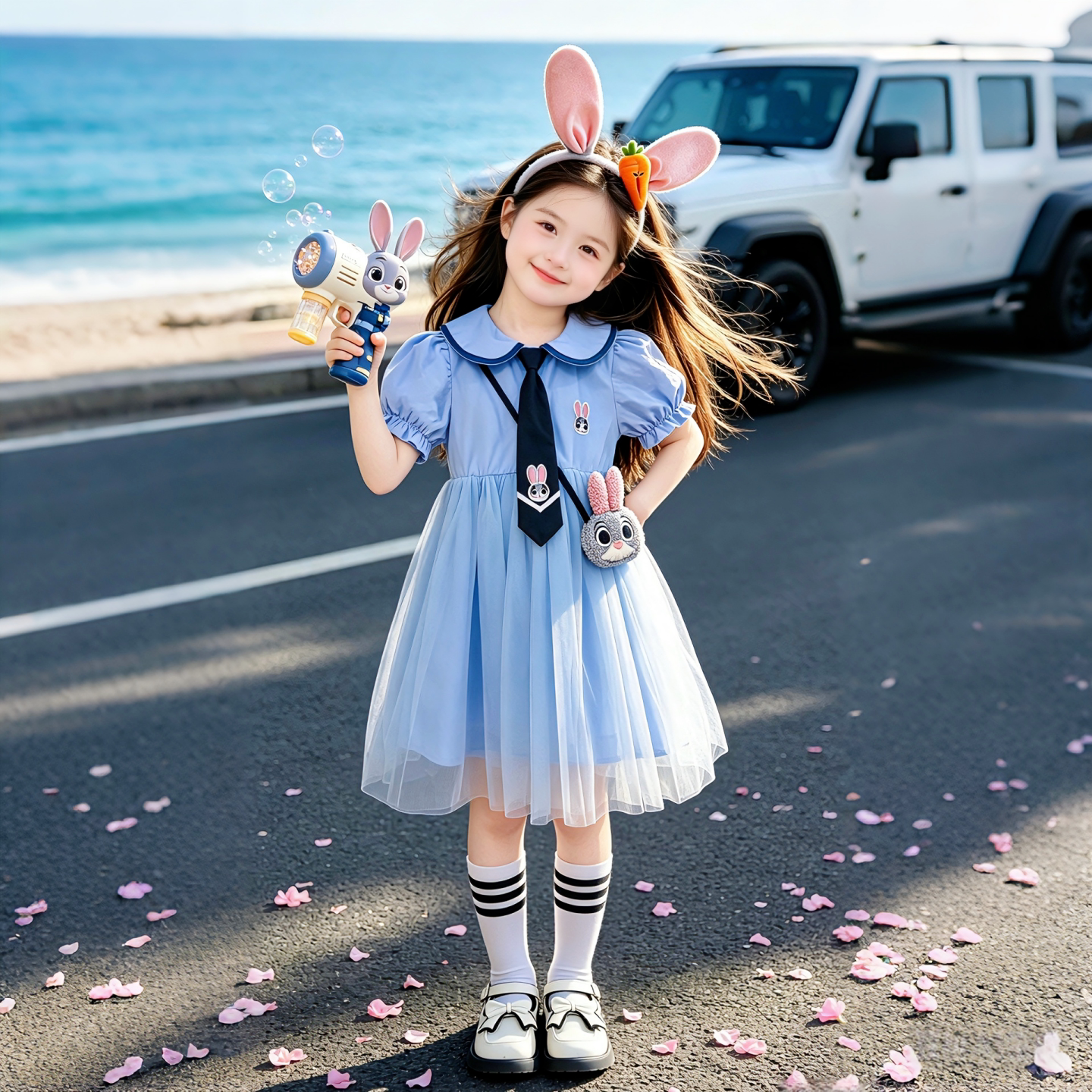 朱迪兔子警官马甲连衣裙套装女孩网纱公主裙夏季2026春装新款女童