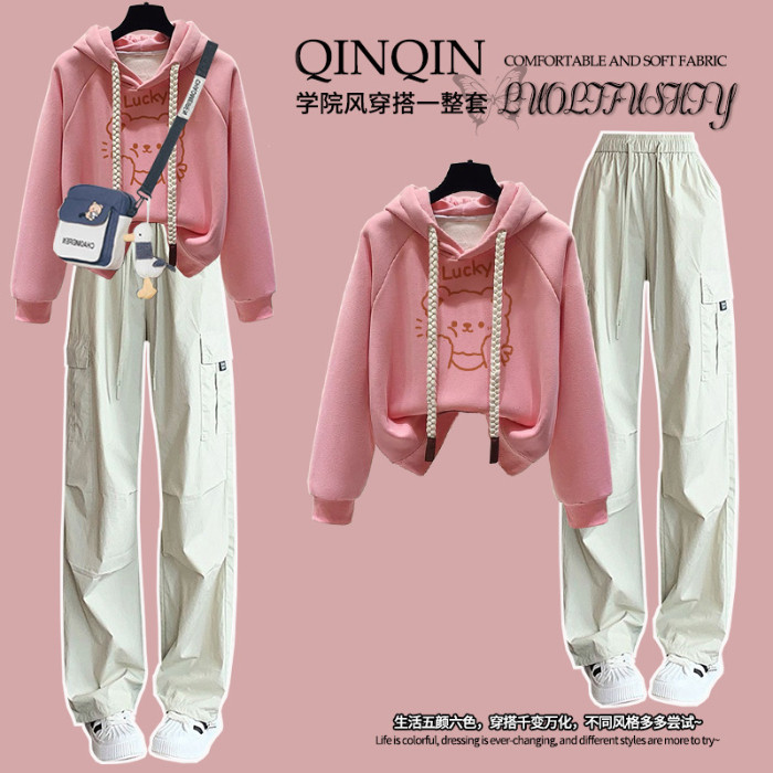 女童巨好看的学院风套装2026春装新款中大童卫衣工装裤春秋两件套