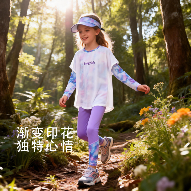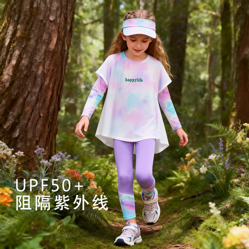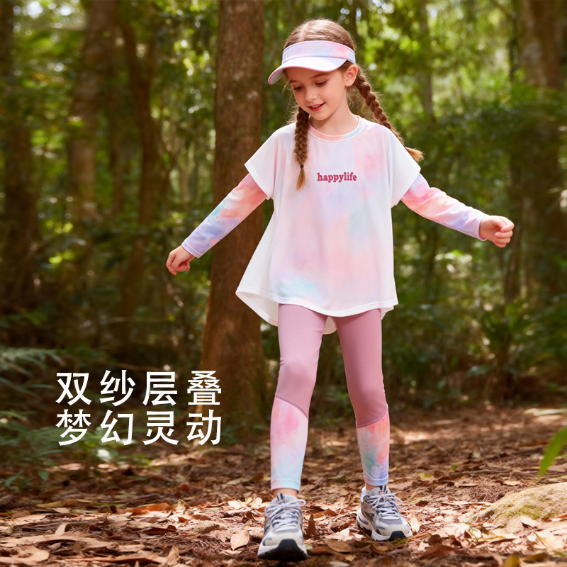 女童夏款长袖长裤水母衣套装速干瑜珈服遮阳衫中大童防晒运动透气