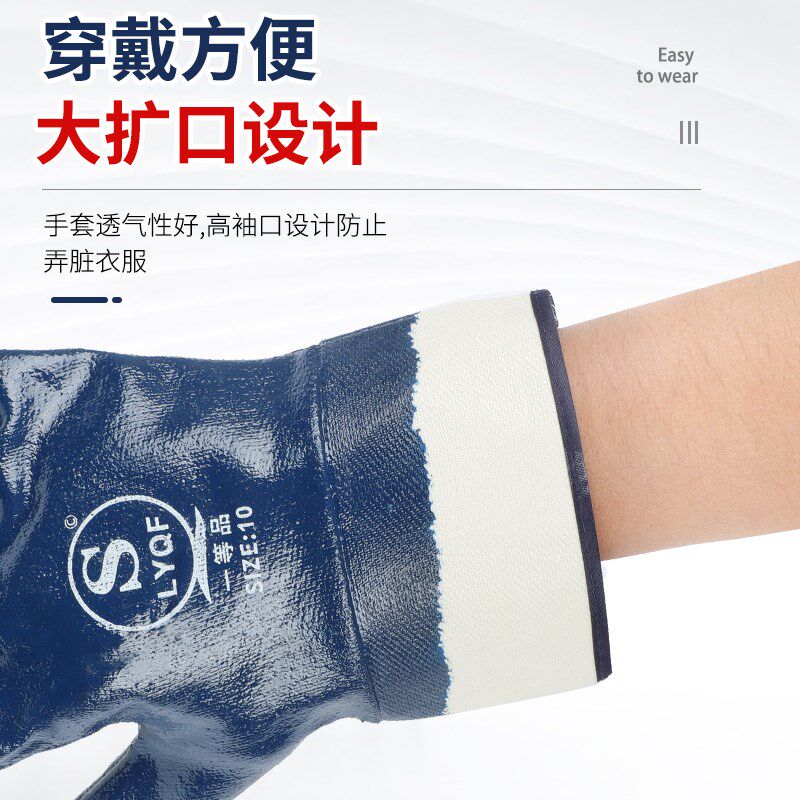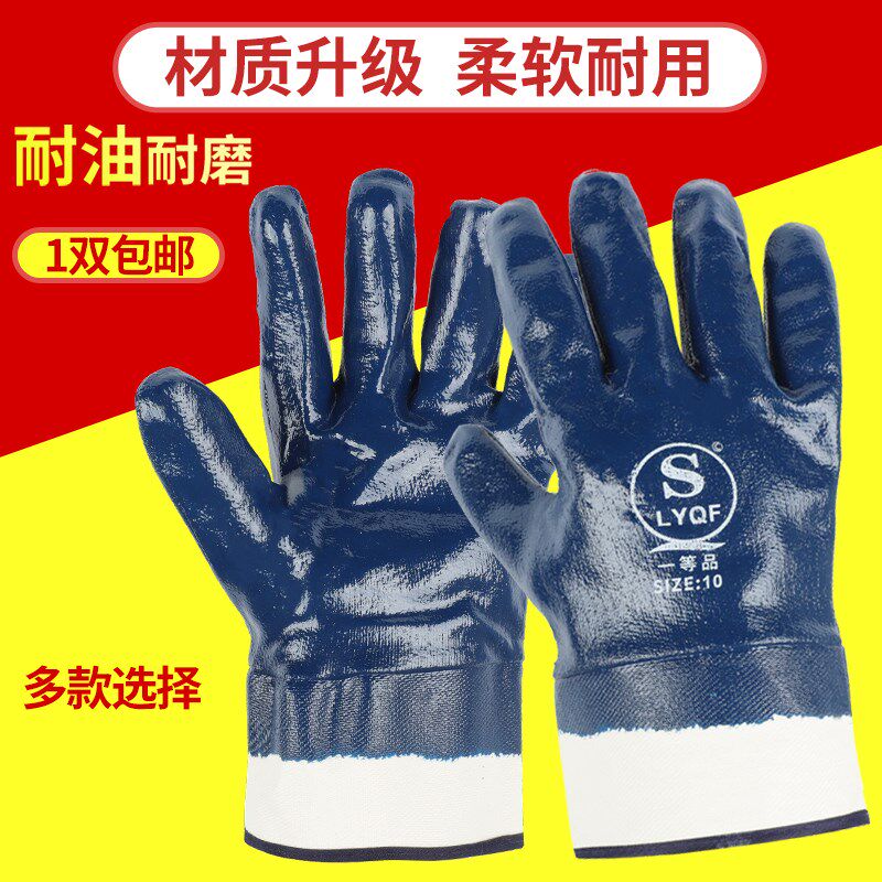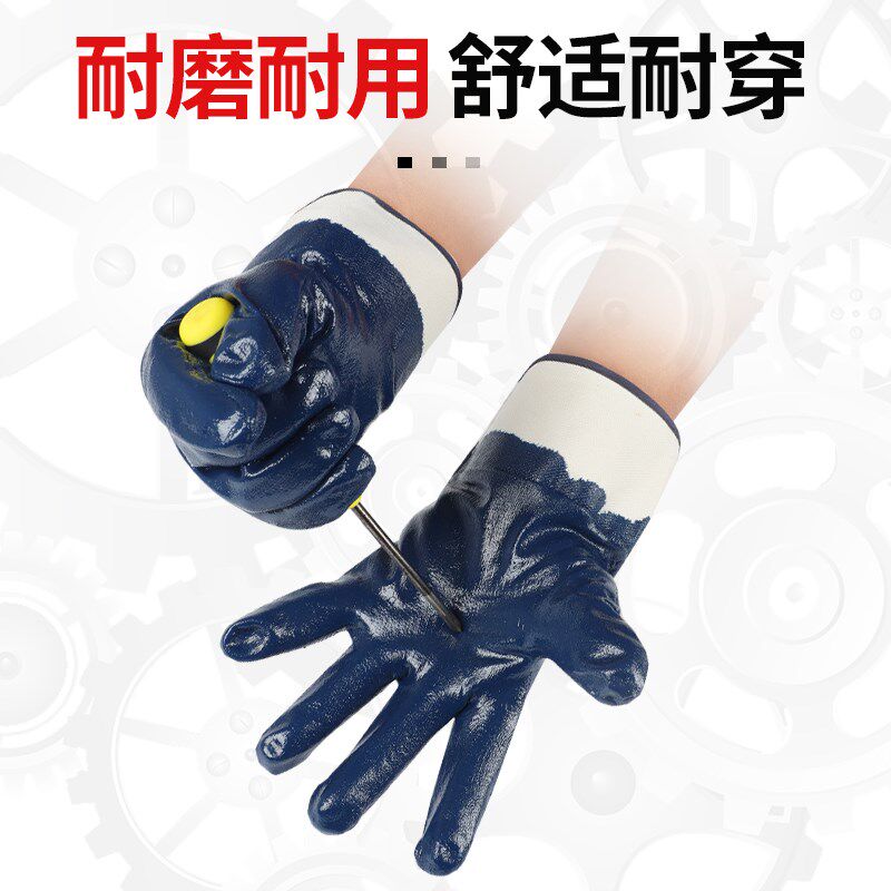防油手套劳保耐磨工作防水耐油橡胶工业丁腈胶皮干活加油电焊帆布