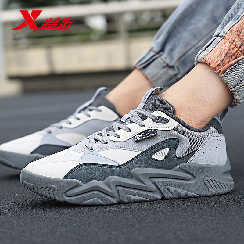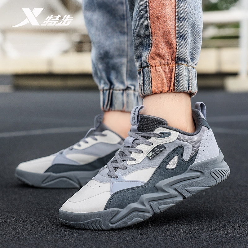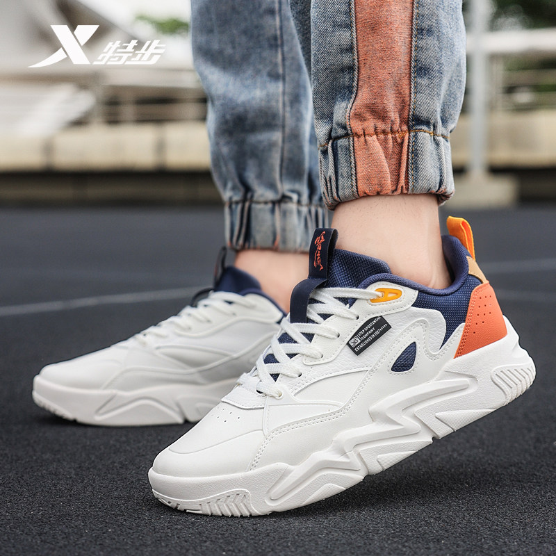 特步板鞋男2026新款春季皮面防水运动鞋轻便软底低帮休闲鞋子男鞋