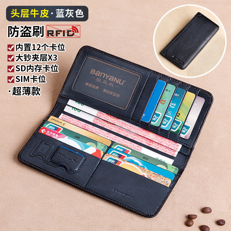 2025新款钱包男超薄长款头层牛皮真皮卡位多复古竖款防盗刷皮夹子