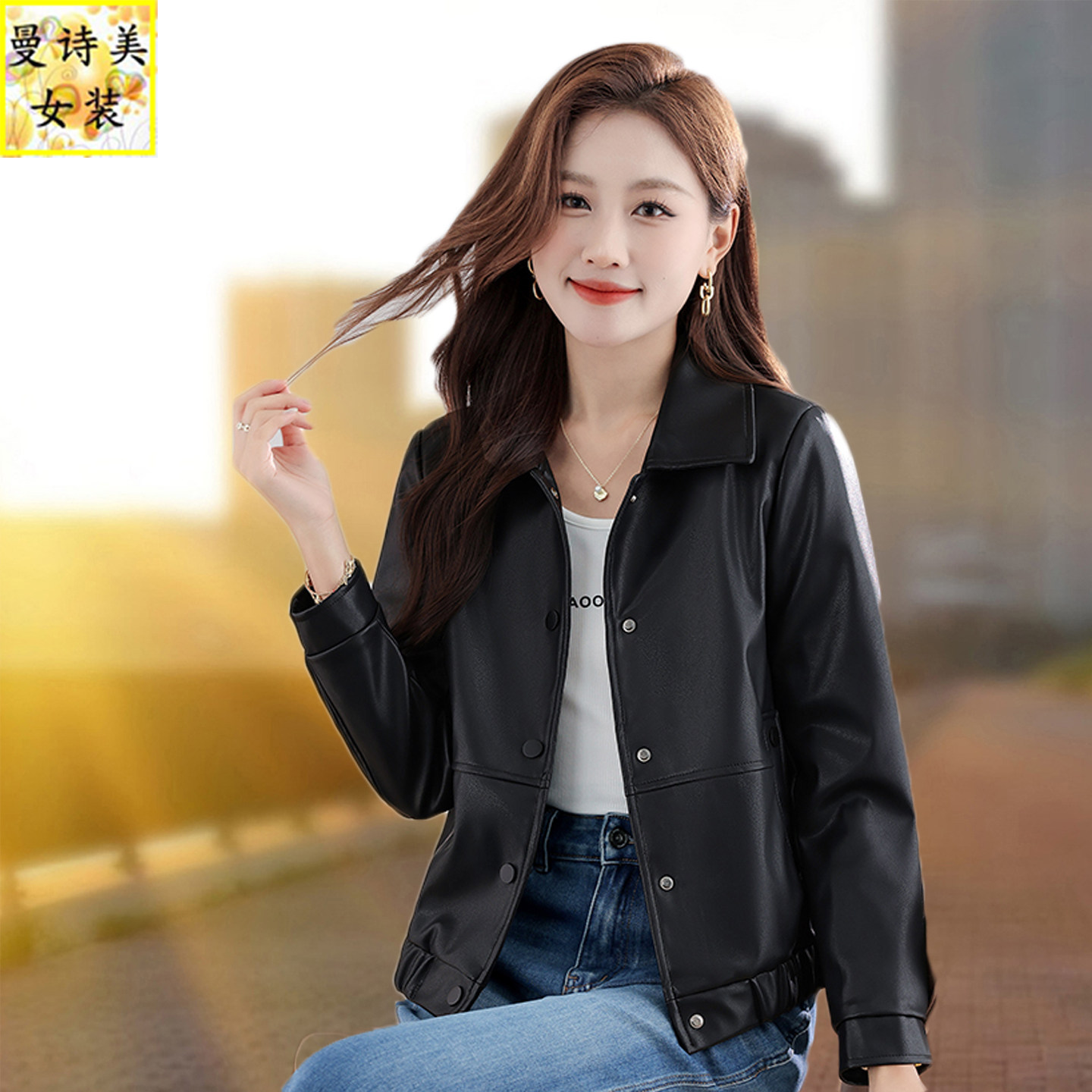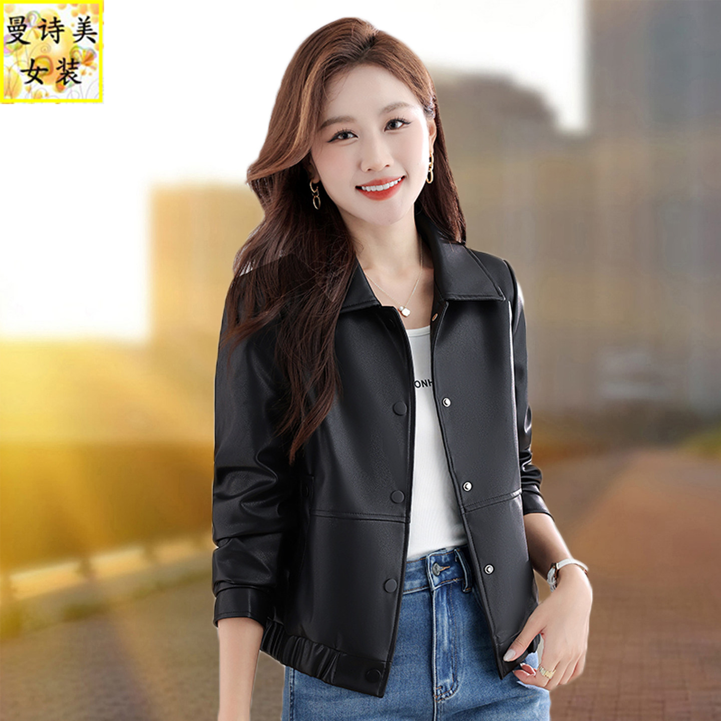 黑色皮衣外套女款2026新款春秋时尚气质百搭休闲妈妈水洗pu皮夹克