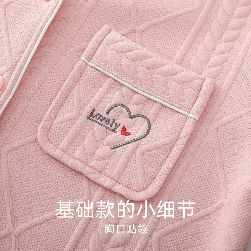 浪莎睡衣女款秋冬季加厚纯棉夹棉月子服产后空气棉大码家居服套装