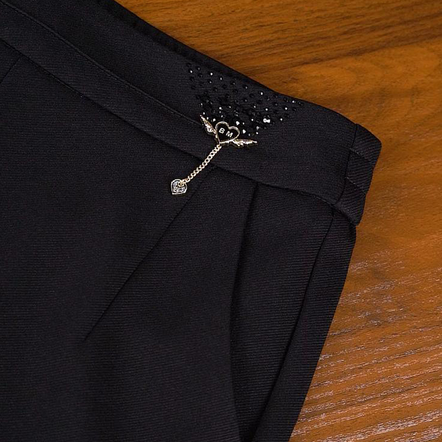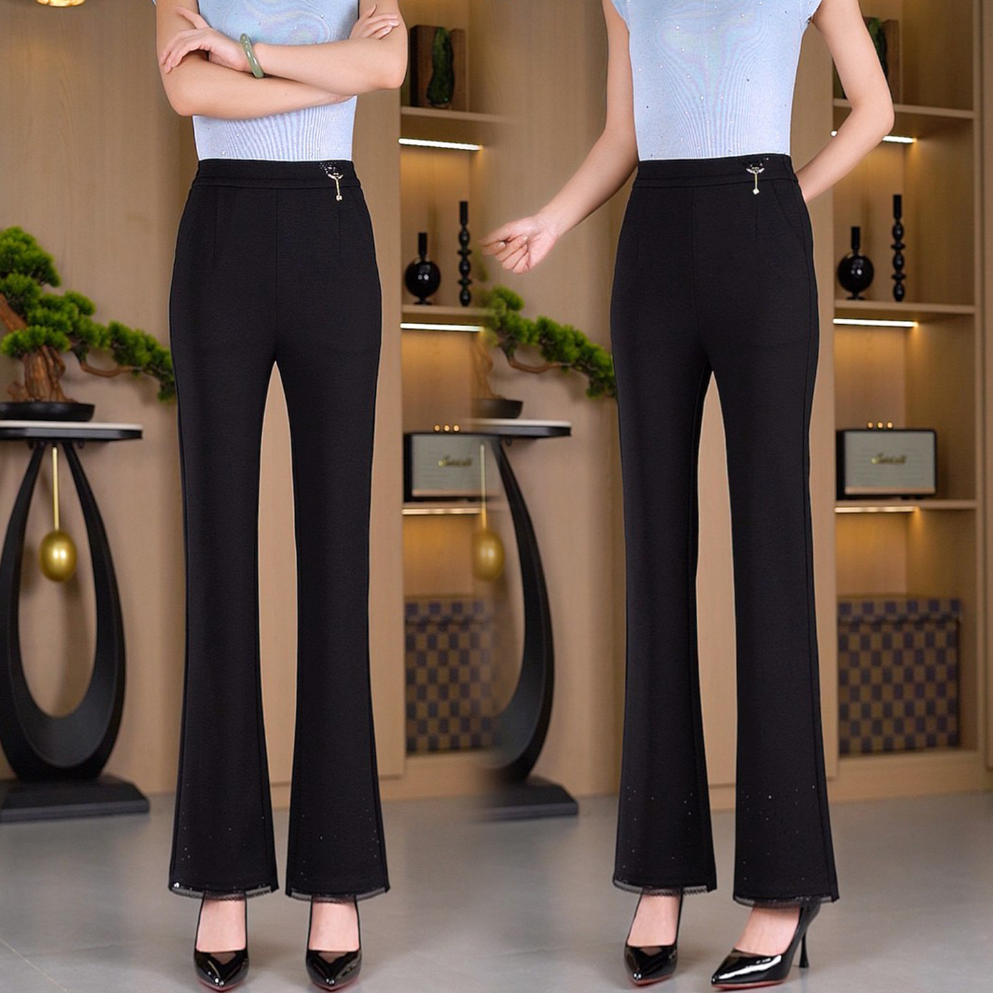 微喇叭裤子女款夏季薄款高腰直筒洋气烫钻花边垂感百搭黑色休闲裤