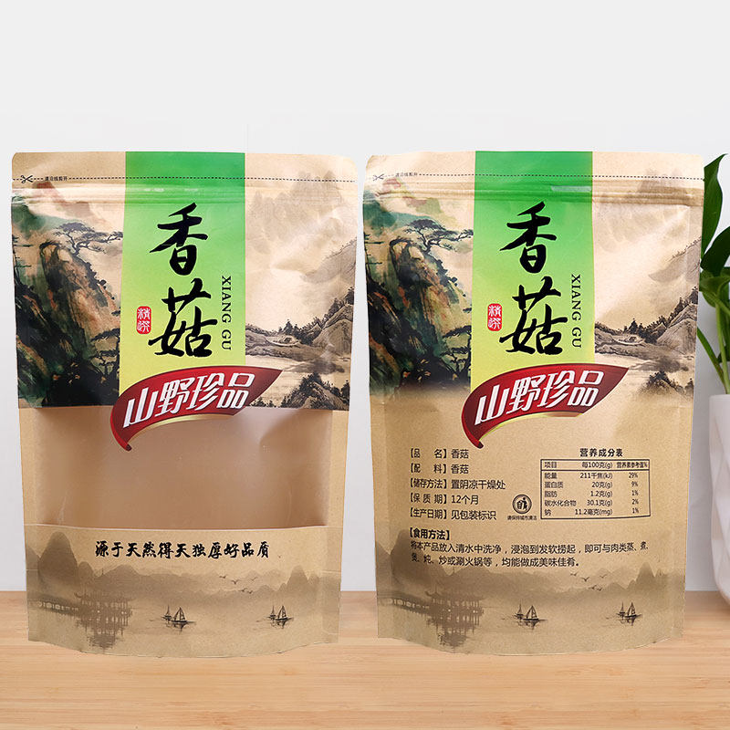香菇包装袋黑木耳牛皮纸自封袋东北山珍食用菌鹿茸菇土特产干货袋