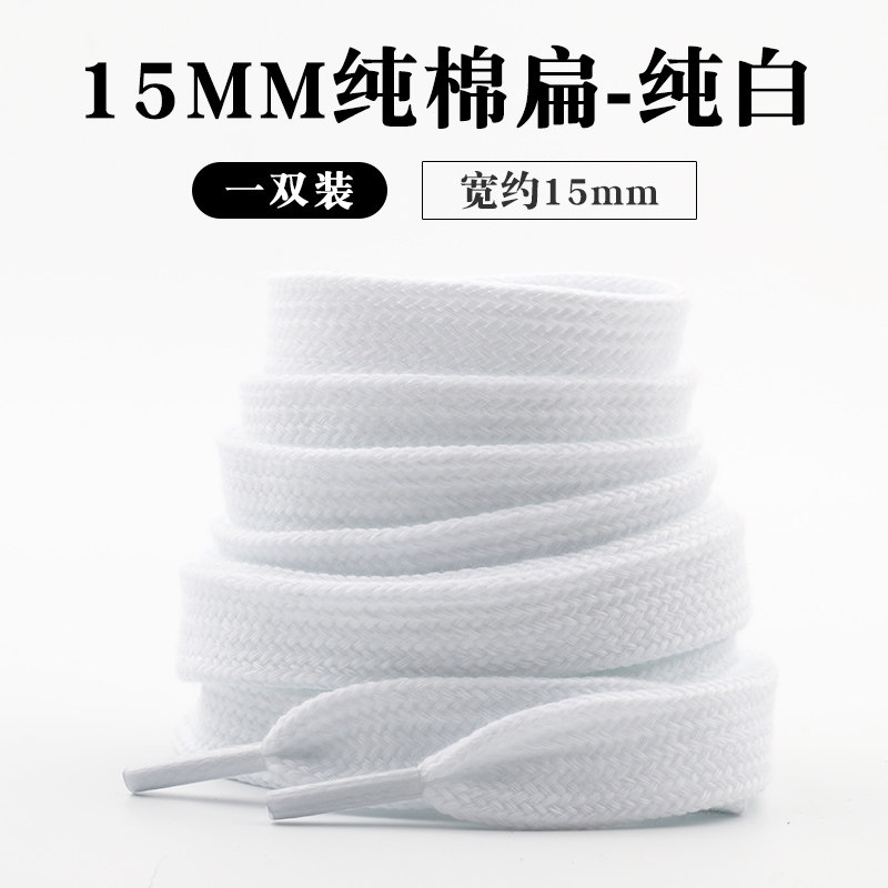 15mm加宽纯棉扁平鞋带适配男女彪马面包鞋万斯帆布鞋李宁阿迪板鞋