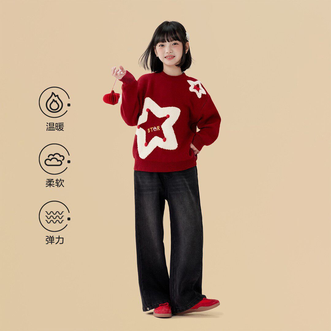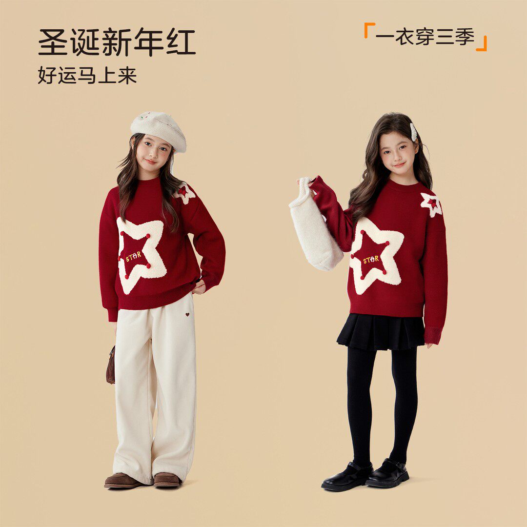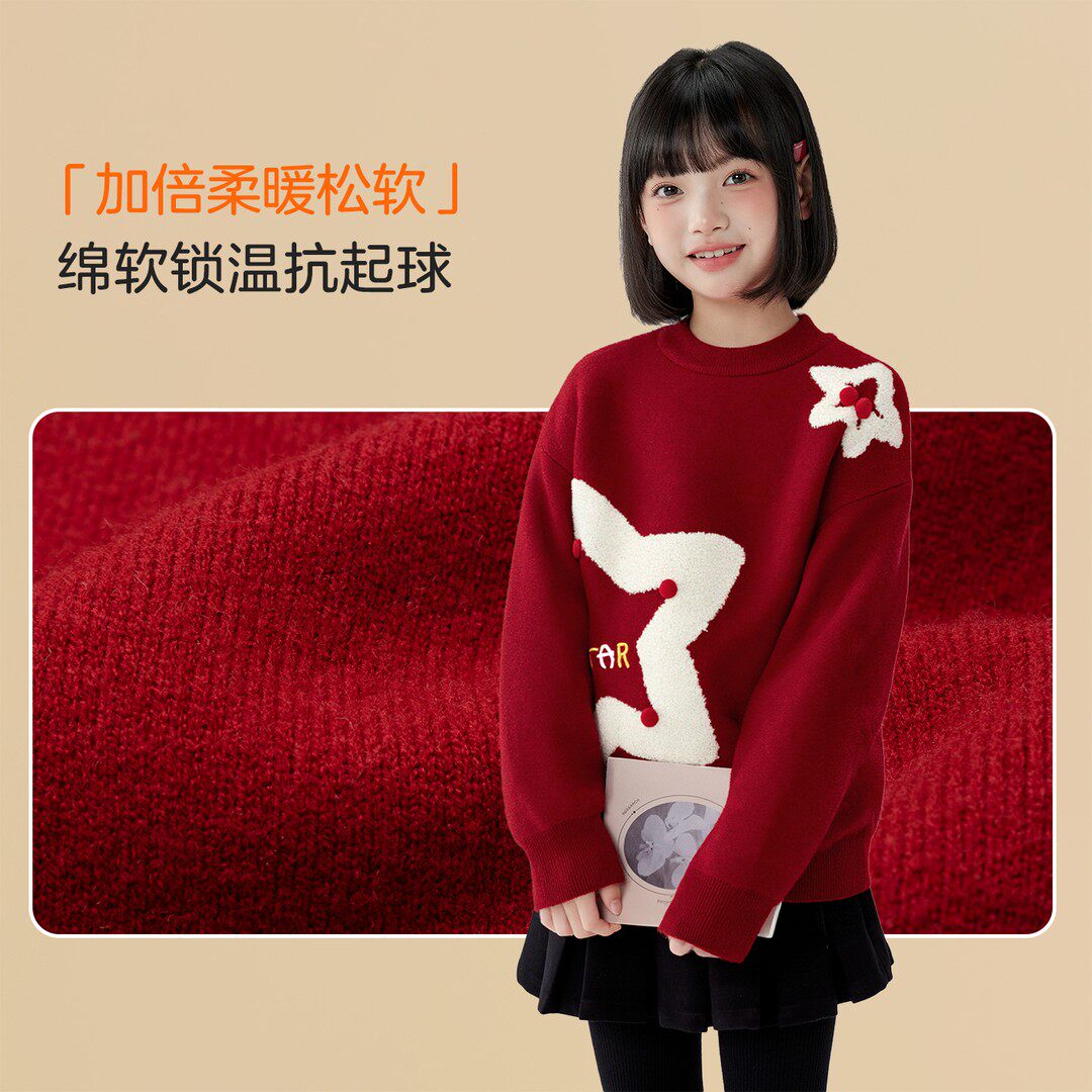 过年毛衣女童红色新年服秋冬季2026新款儿童洋气针织衫女孩拜年服