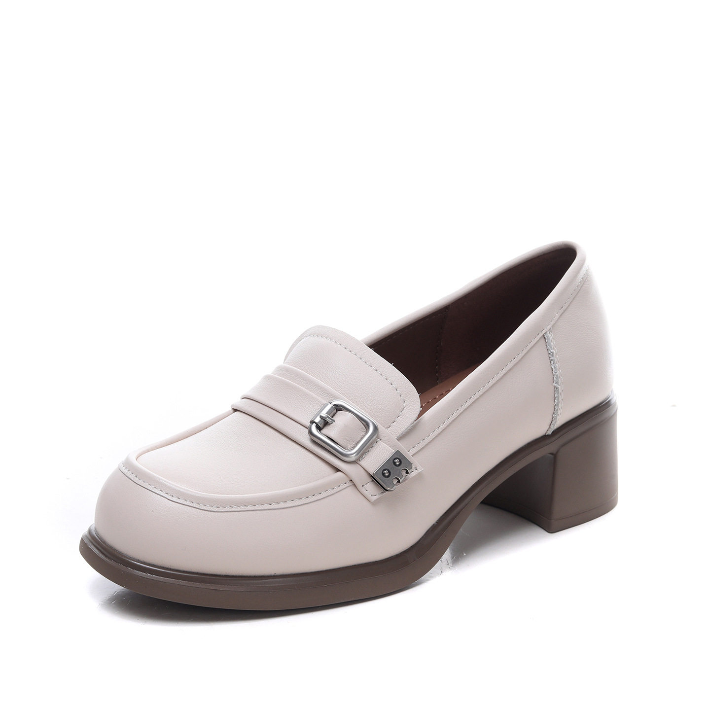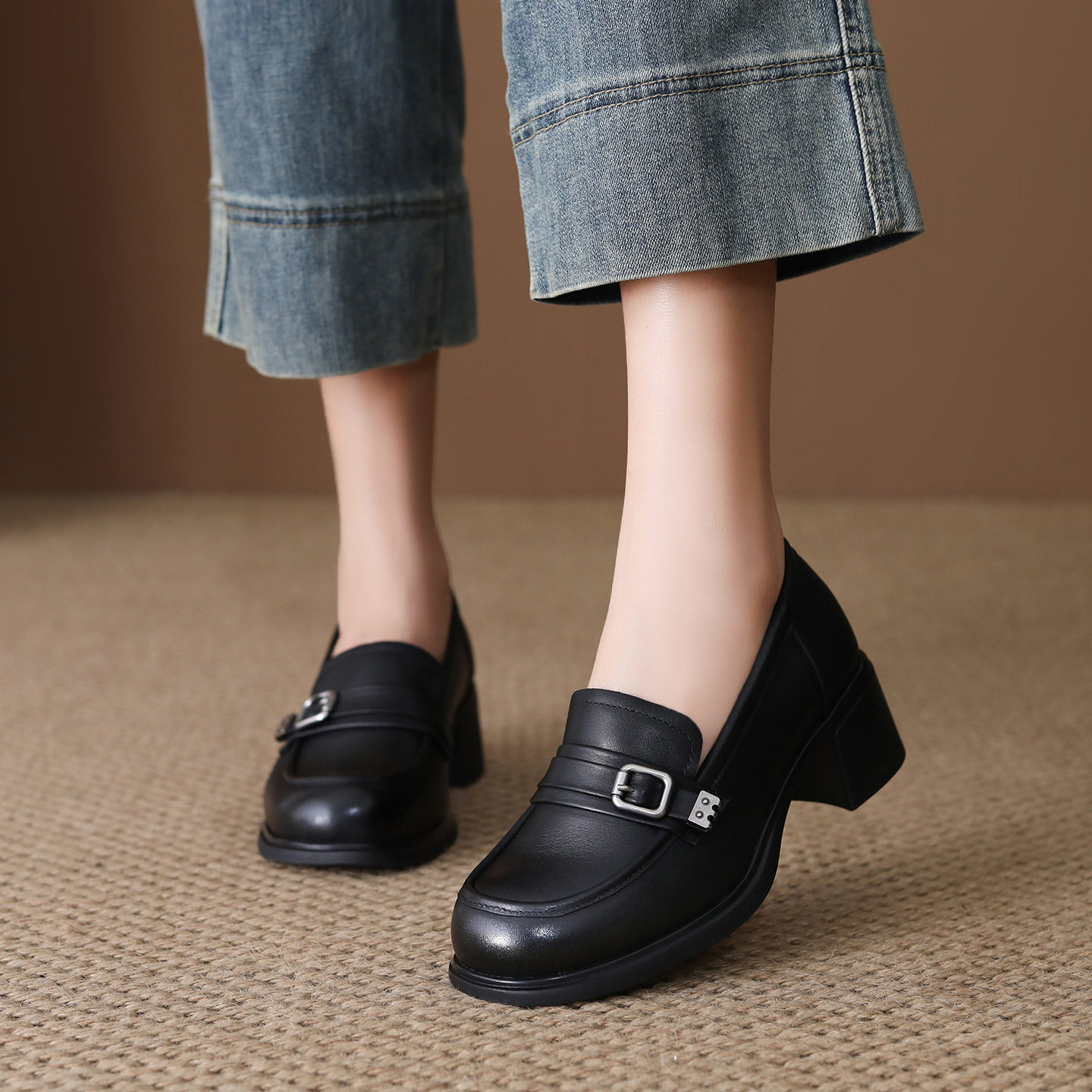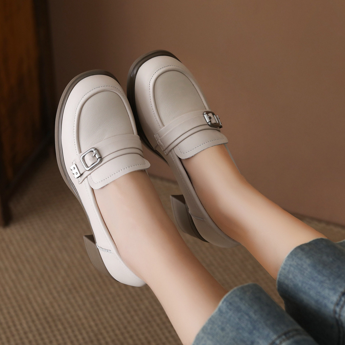 头层牛皮乐福鞋女2026春季新款英伦风软底粗跟复古透气百搭单鞋女