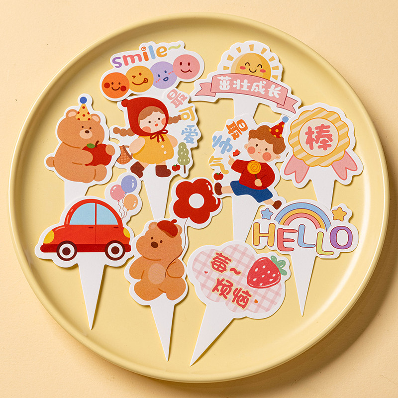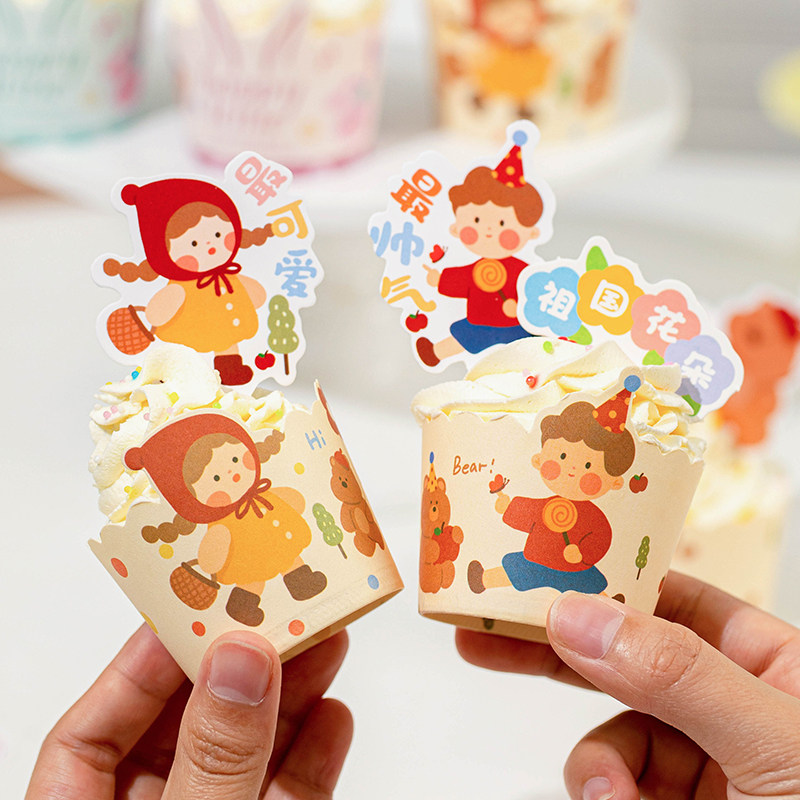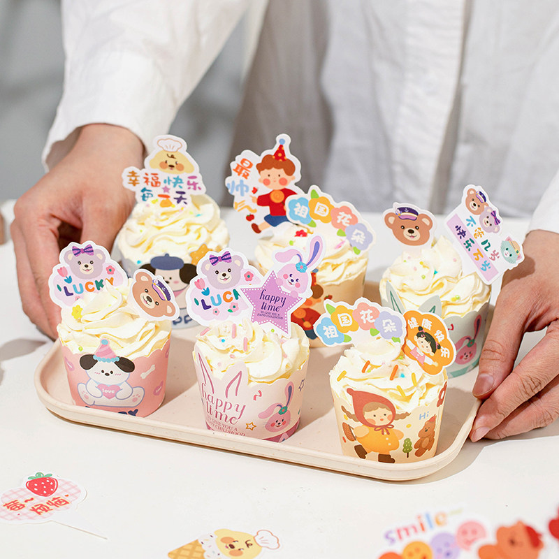 六一儿童节蛋糕装饰纸杯托插牌杯子生日蛋糕插件摆件卡纸可爱61