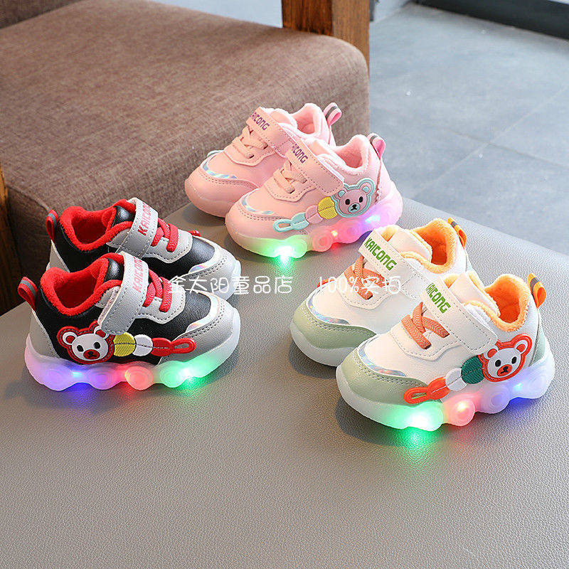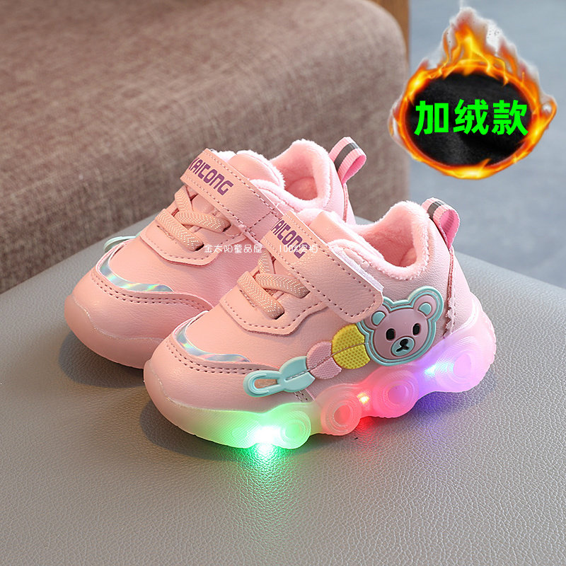 冬季新款男童亮灯二棉鞋1-2-3岁5女宝宝软底学步鞋子婴幼儿保暖