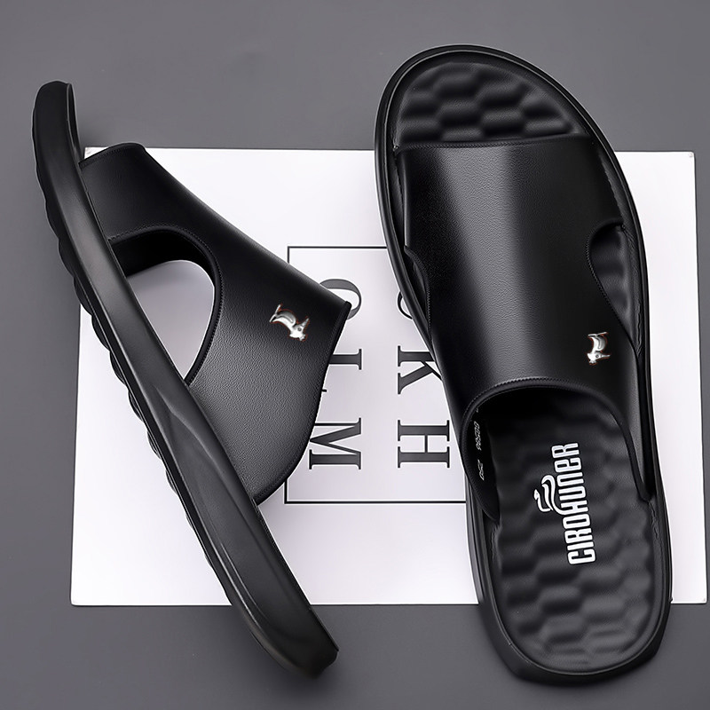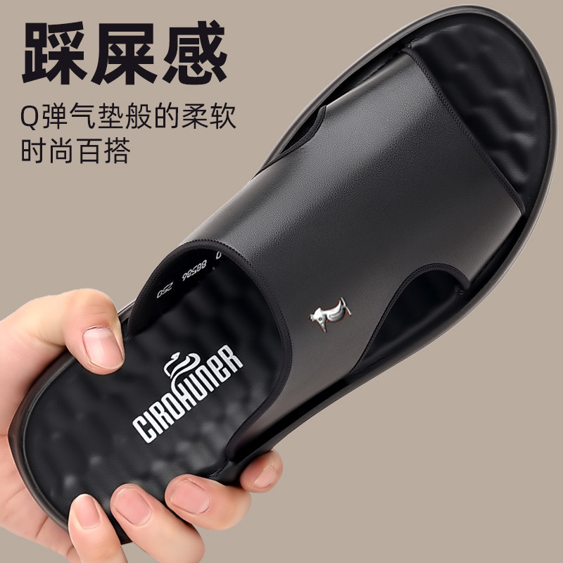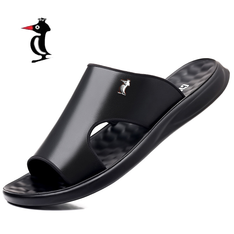 欧伦啄木鸟【100%全牛皮】新款凉鞋男真皮男士软皮防水拖鞋沙滩鞋