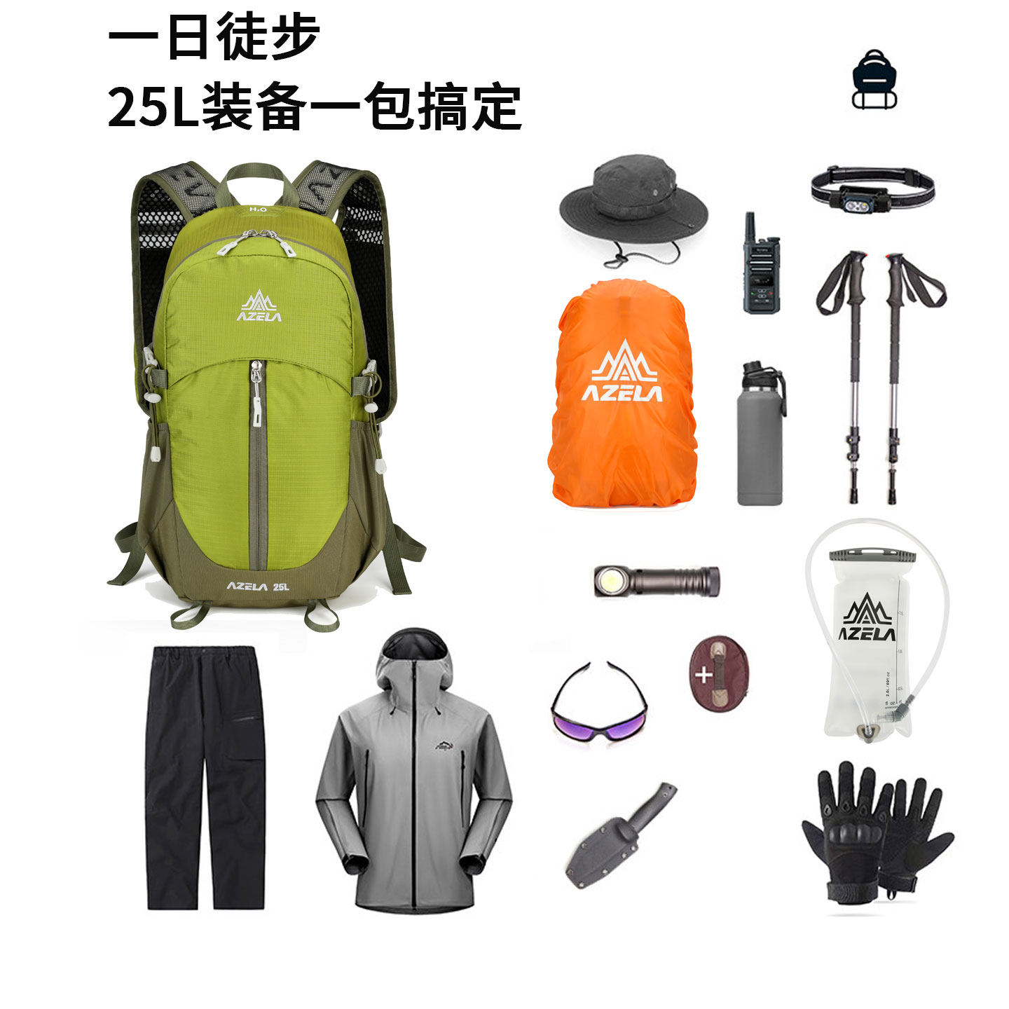 阿泽拉徒步登山包户外大容量旅行背包轻量化运动水袋双肩包25L