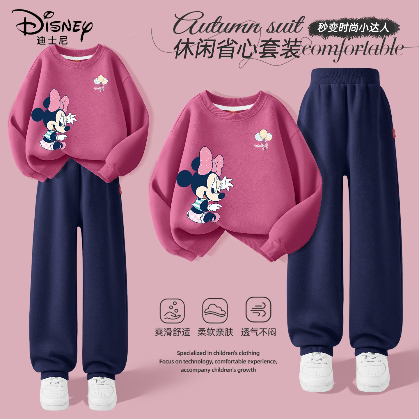 迪士尼女童春装套装2026新款春大童女孩运动衣服春季儿童春秋童装