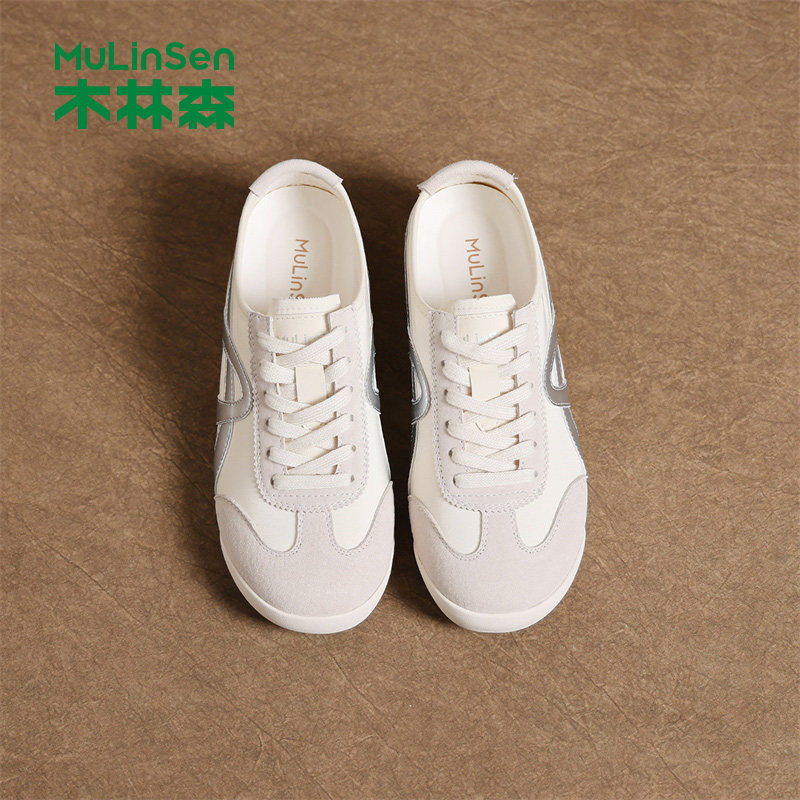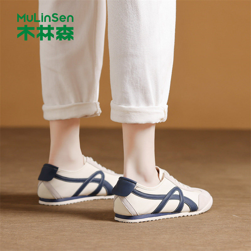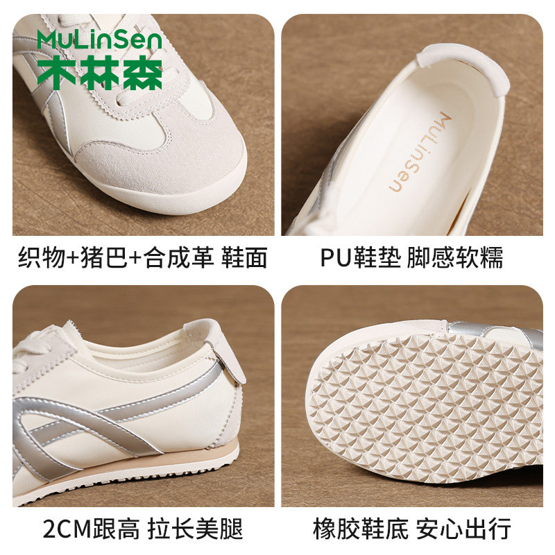木林森平底休闲鞋女2026新款夏季厚底百搭小白鞋运动复古阿甘女鞋