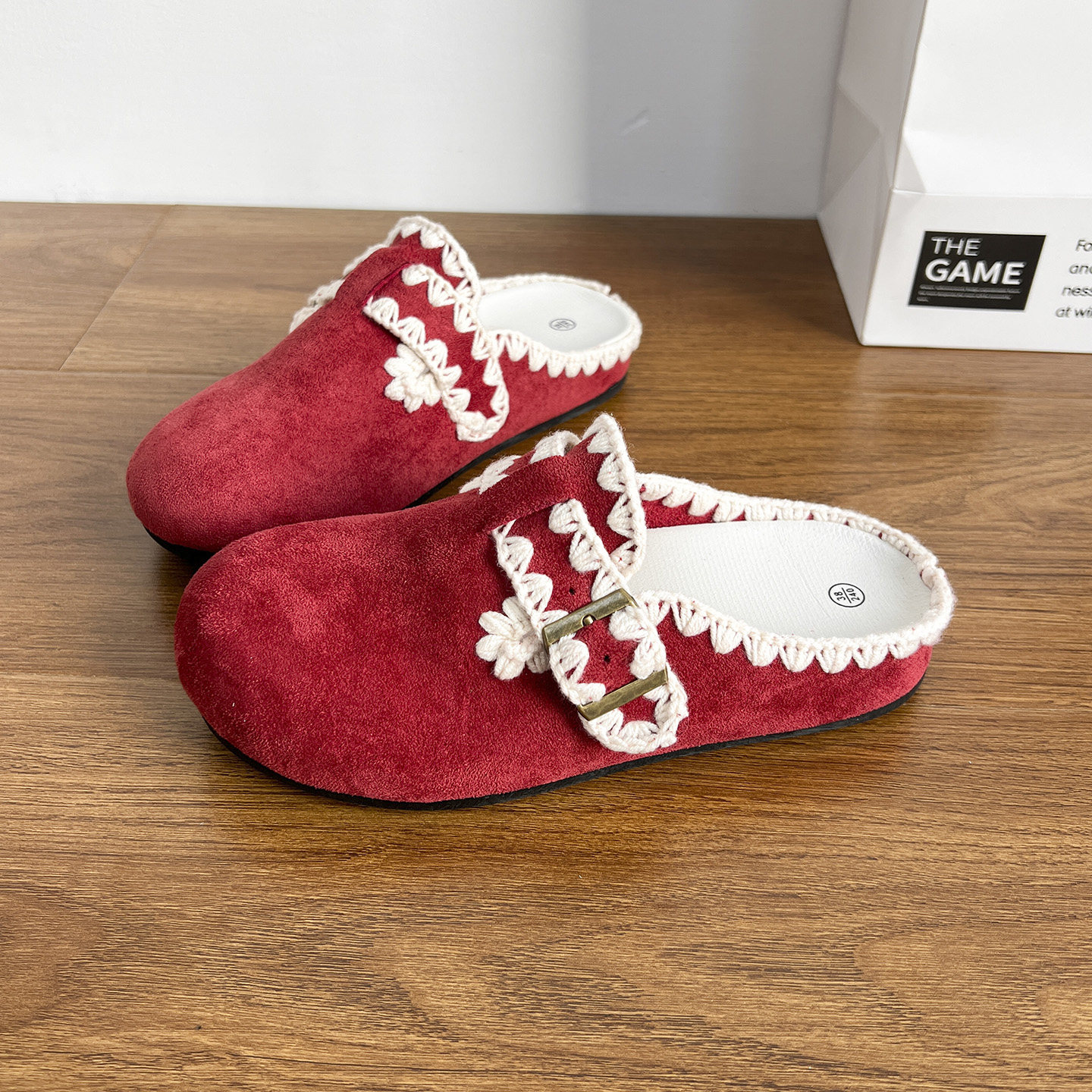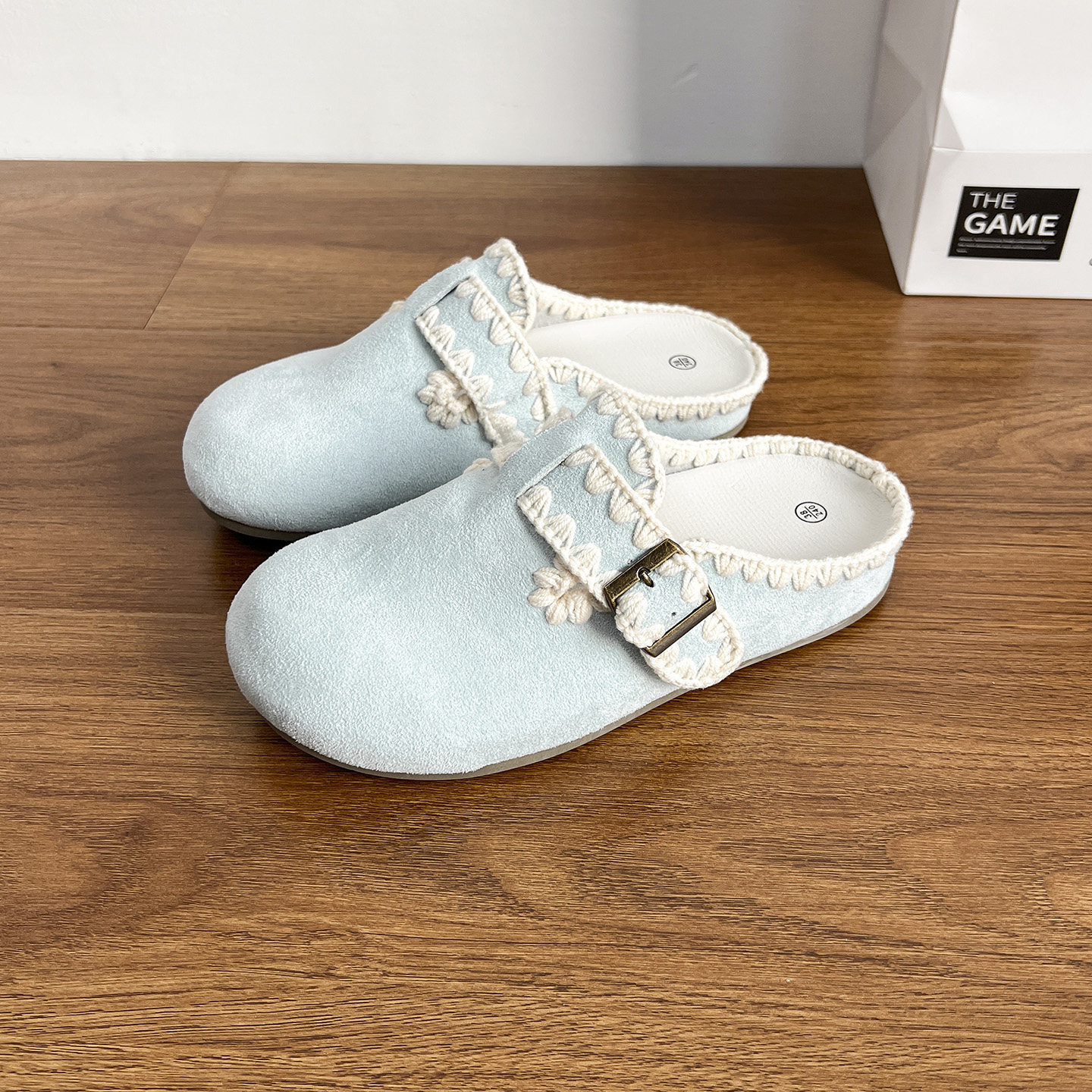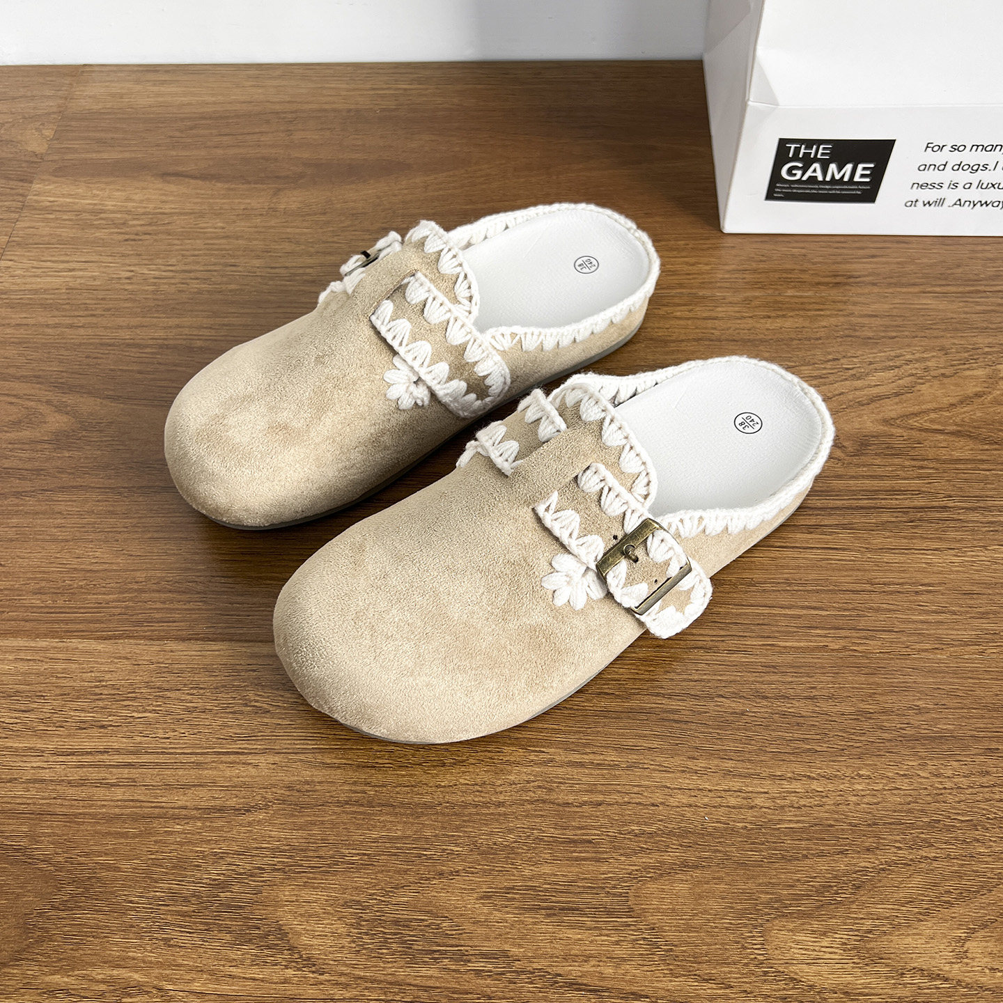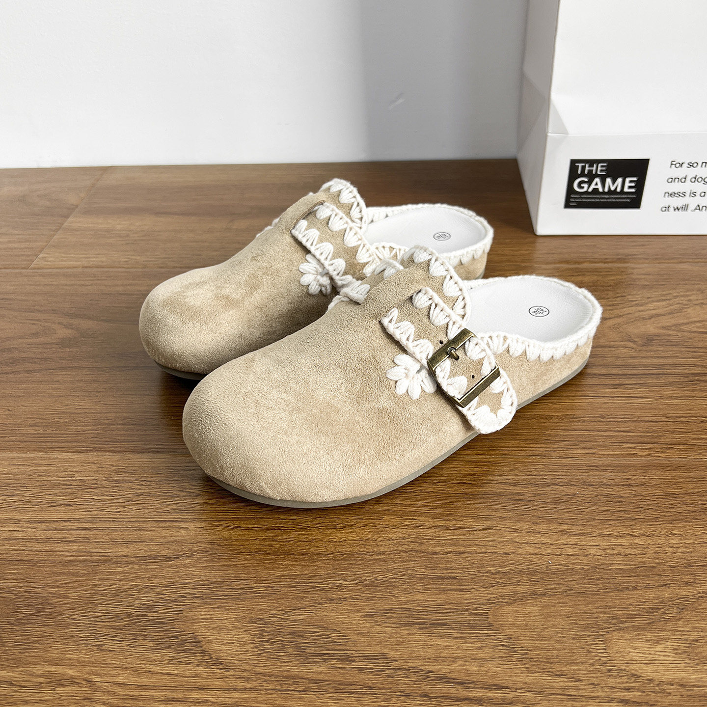 卷毛高一脚蹬百搭勃肯鞋软厚底包头半拖鞋外穿2026春夏女鞋休闲鞋