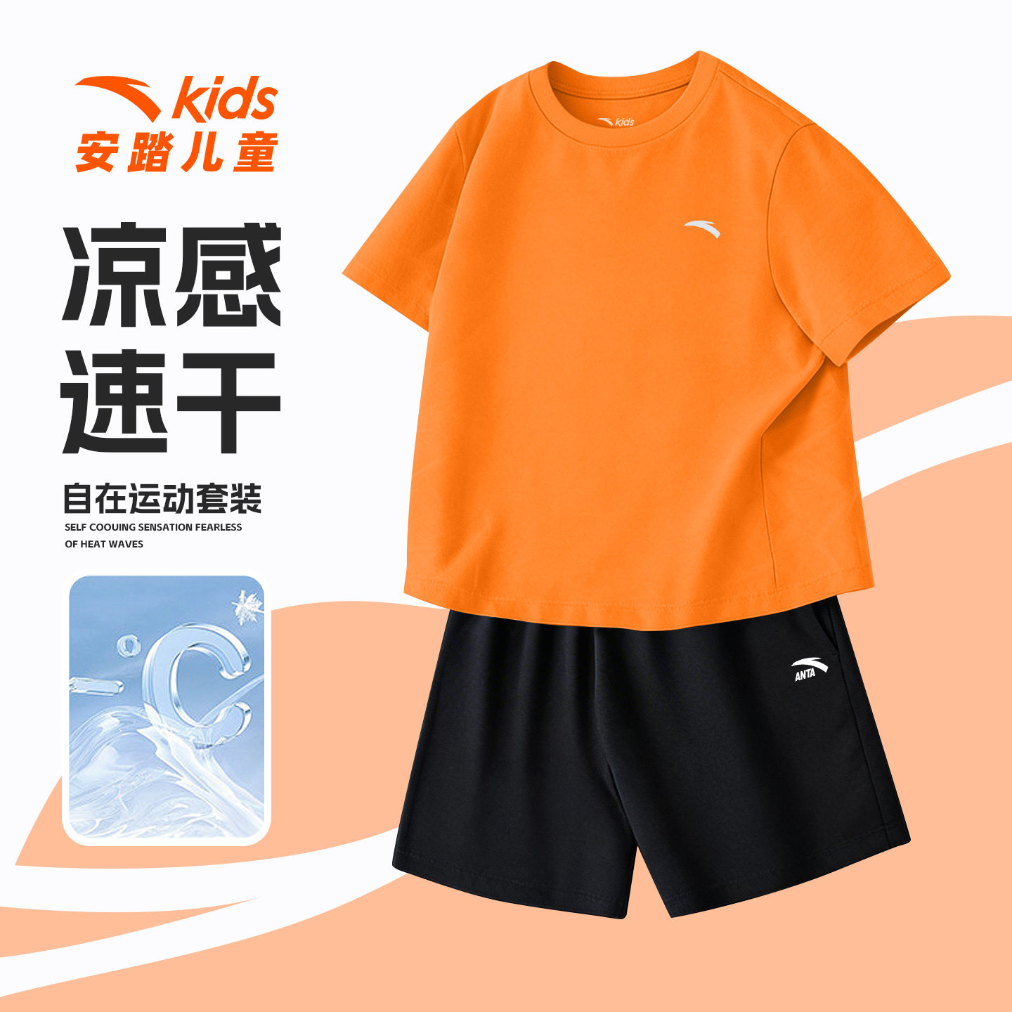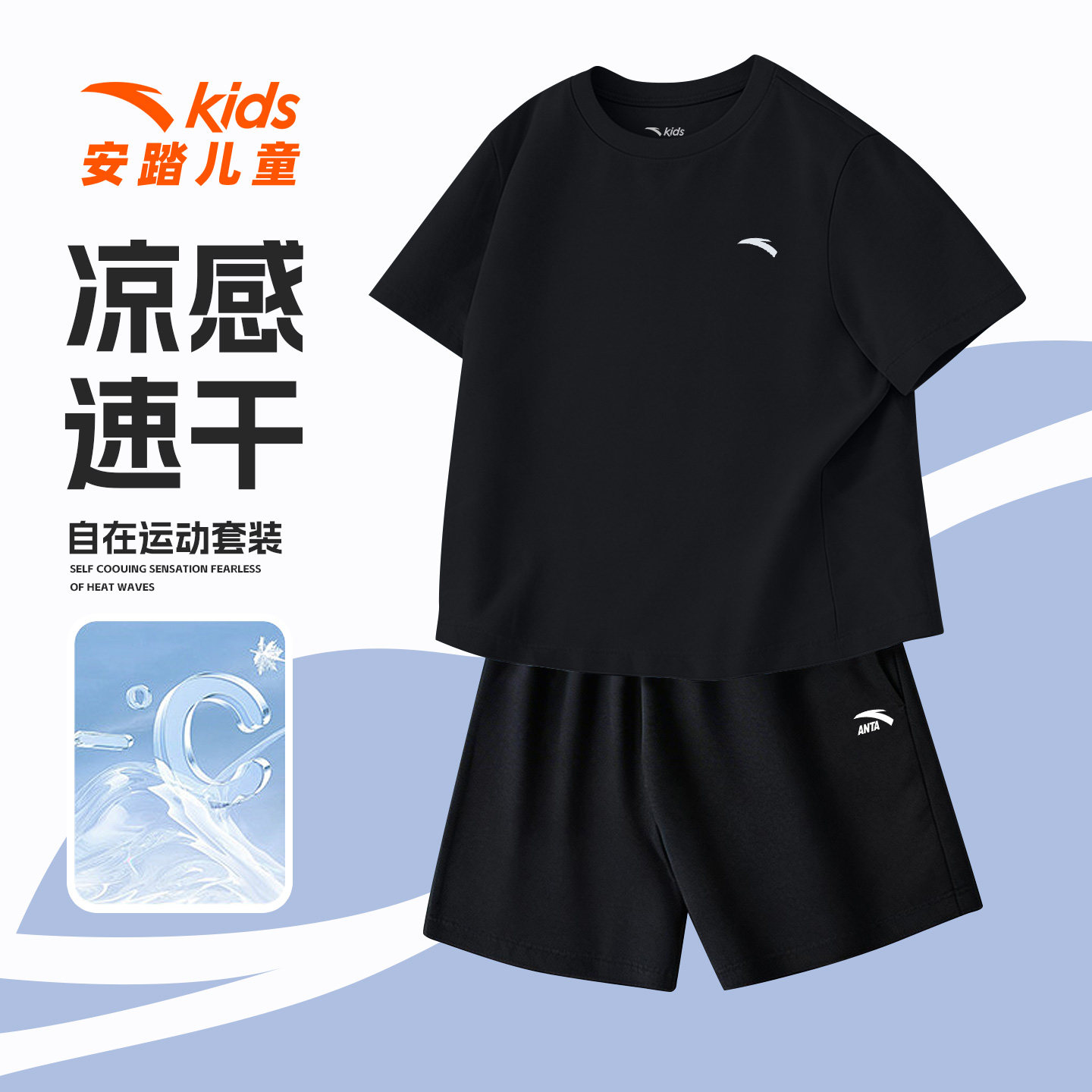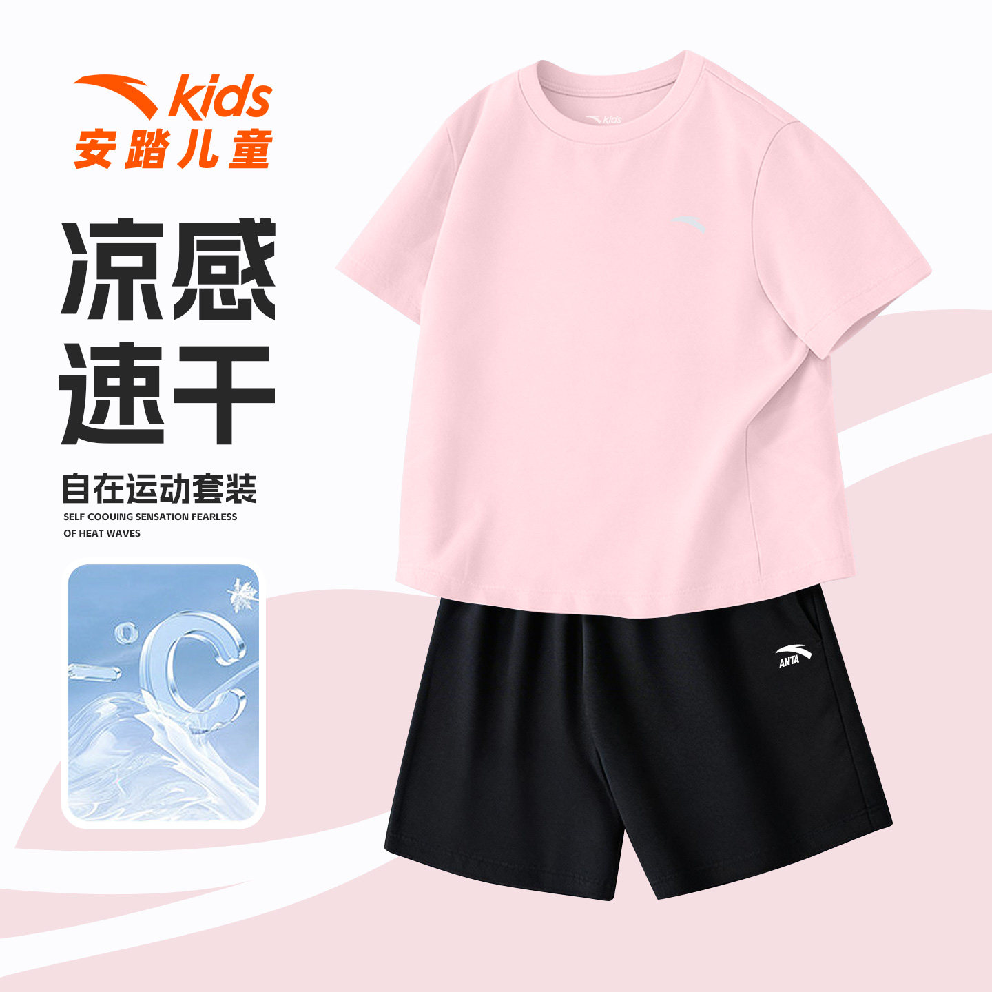 安踏童装运动套装男女童速干短袖短裤两件套户外儿童休闲跑步套装