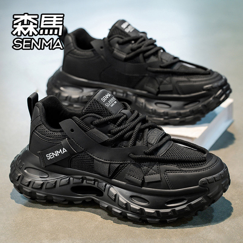 森马网红爆款男鞋夏季透气网面运动休闲厚底增高百搭黑武士老爹鞋