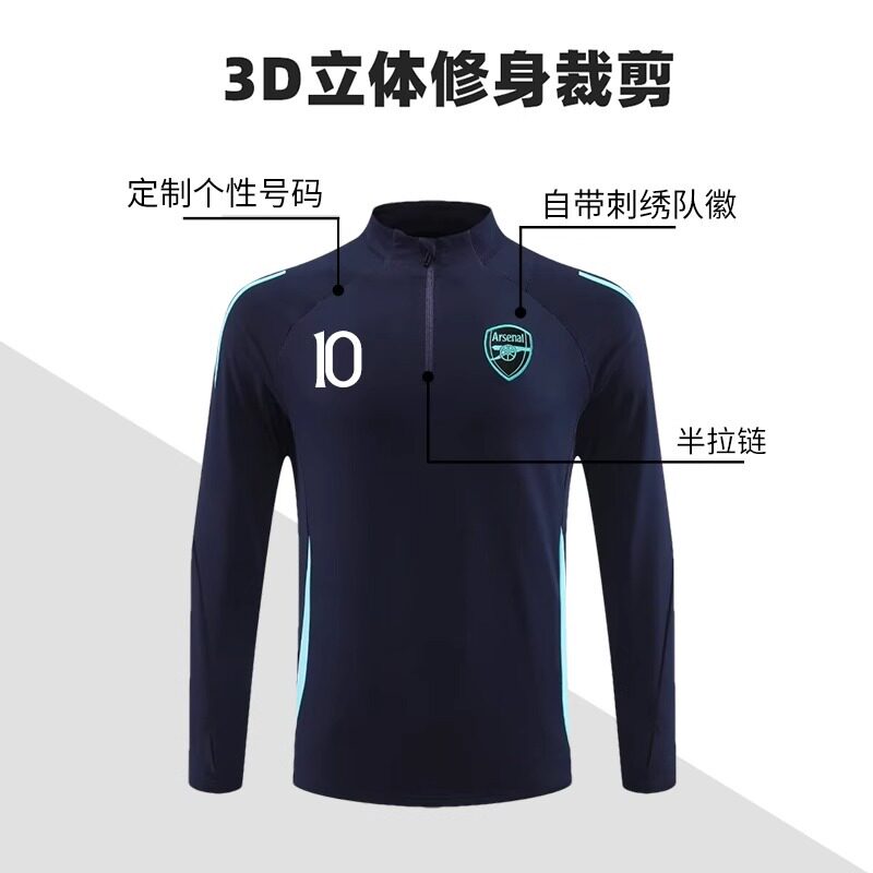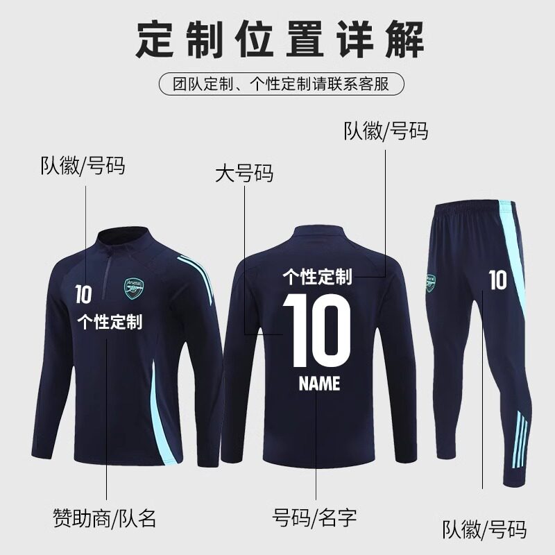 阿森纳长袖足球训练服套装定制秋冬加绒加厚运动外套热身出场服
