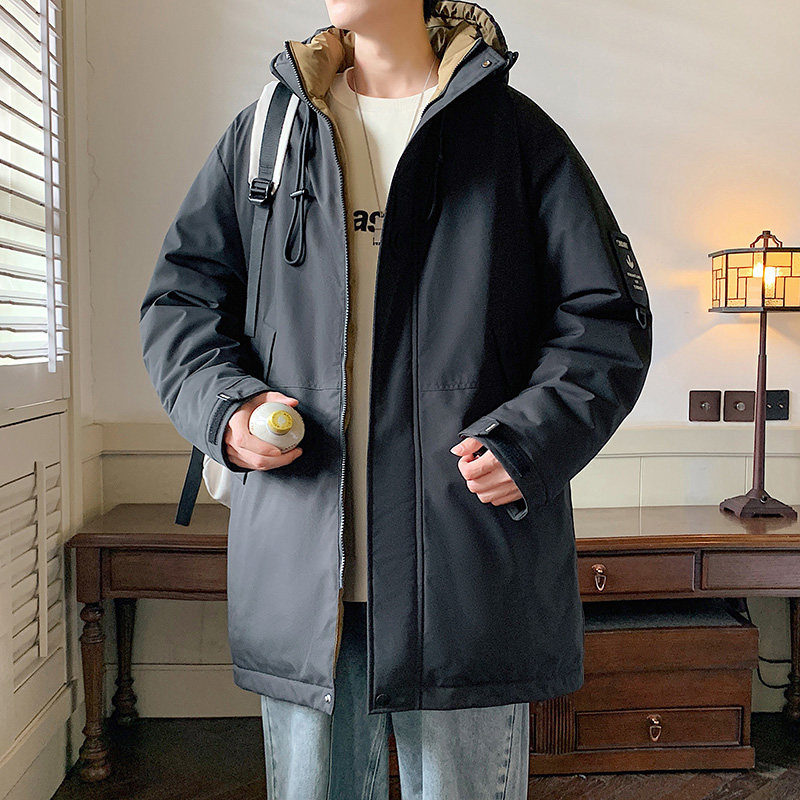 中长款棉衣外套男生冬季高级感痞帅休闲连帽棉袄男款潮流百搭棉服