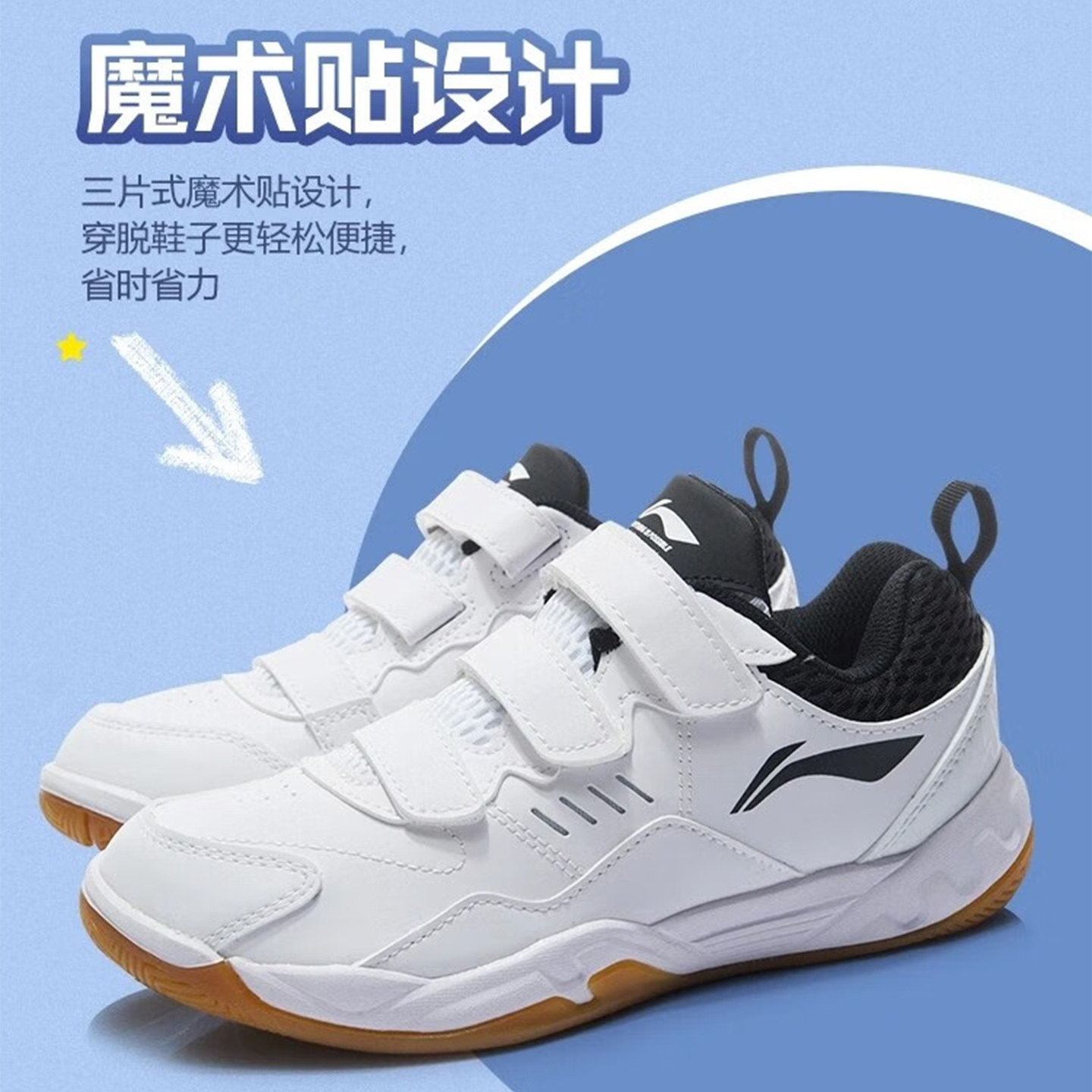 李宁儿童羽毛球鞋男童女童宽楦版全能王减震防滑耐磨魔术贴运动鞋
