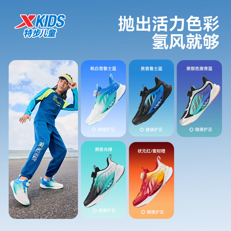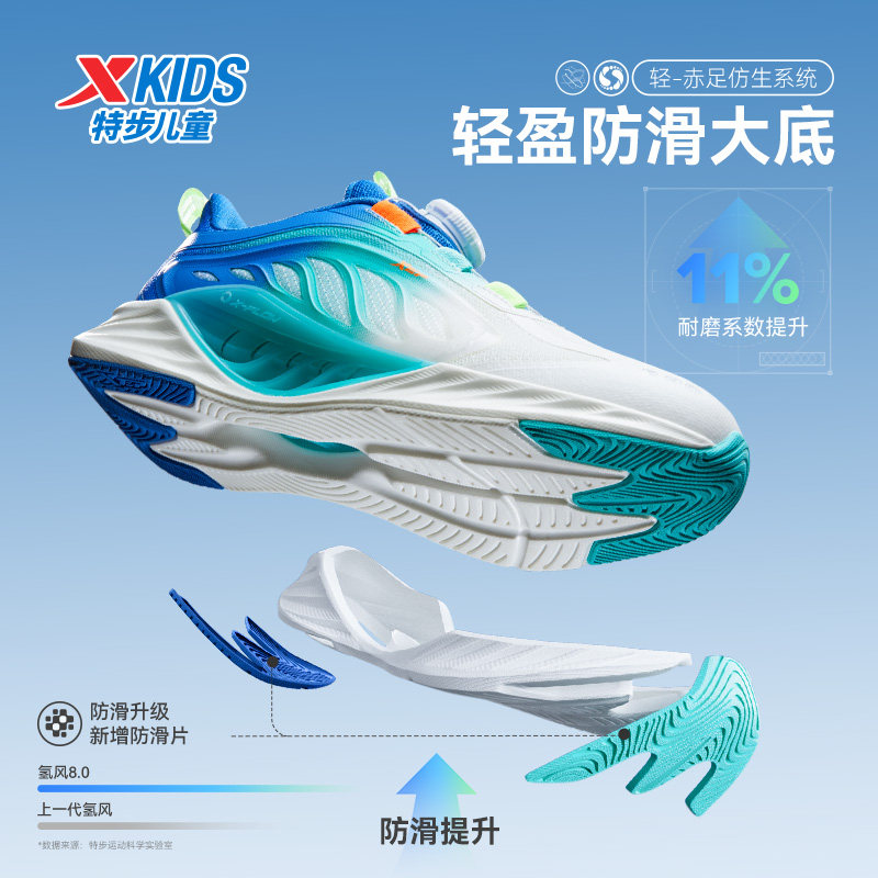 氢风80丨特步童鞋跑步鞋男女童旋转扣减震透气防滑运动鞋轻便耐磨
