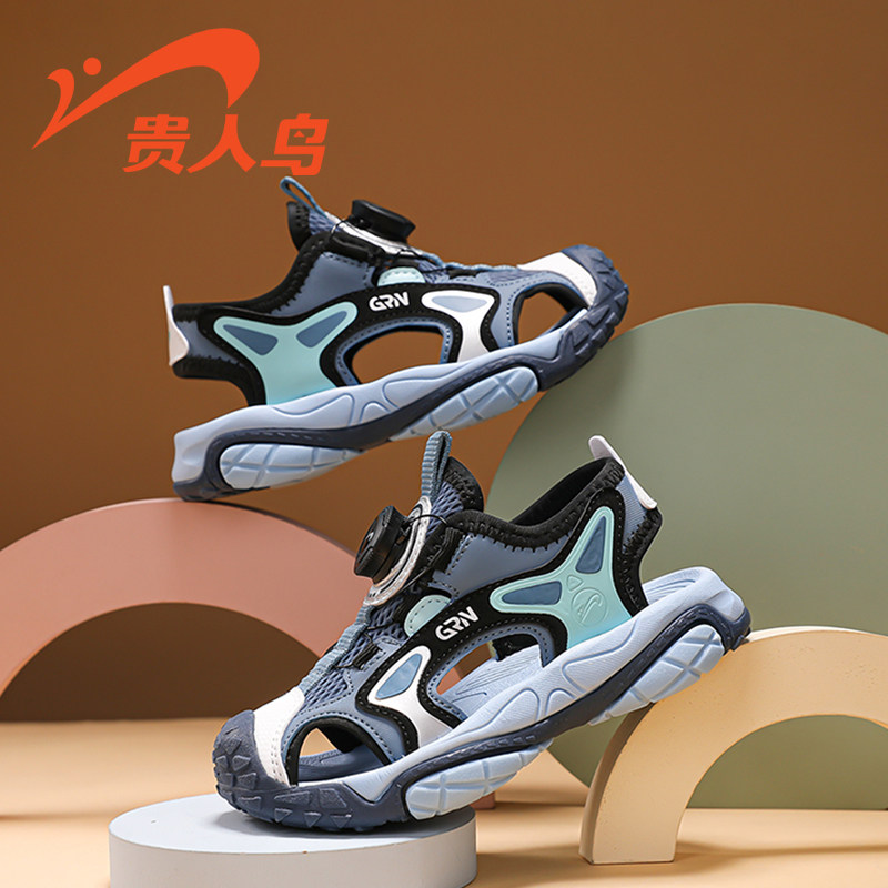 贵人鸟男童凉鞋2026新款夏季透气网鞋防滑包头中大童旋钮扣沙滩鞋