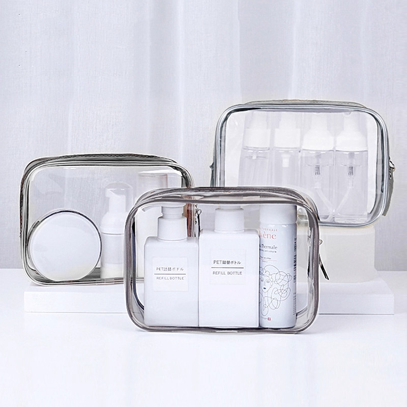 pvc旅行化妆包女大容量透明防水收纳包袋纯色便携防疫包装可定制