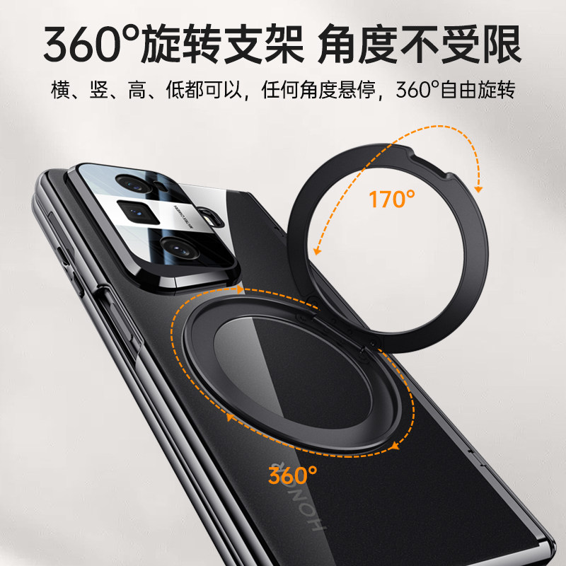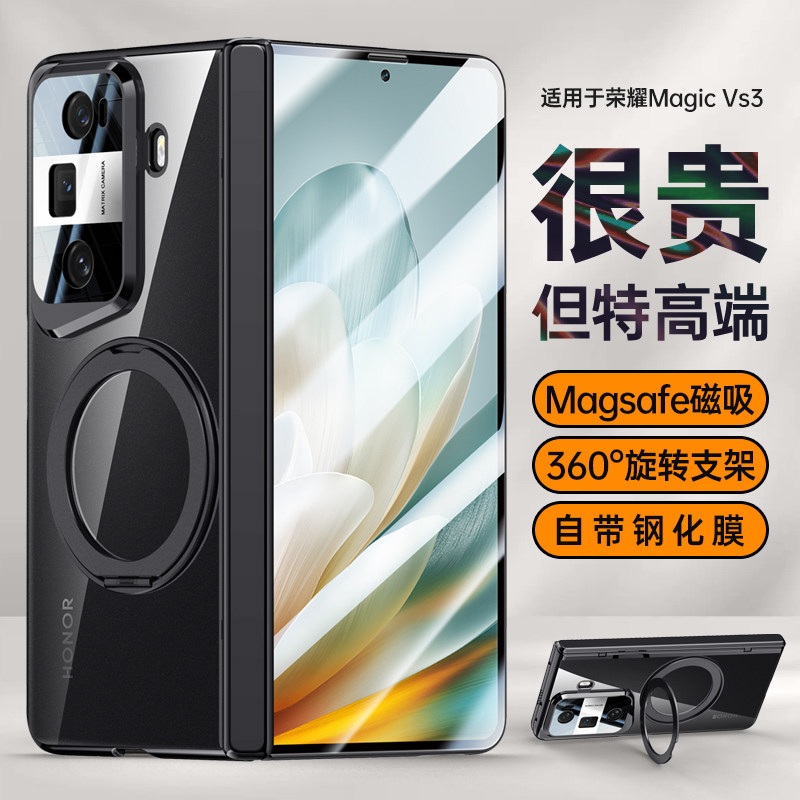 适用荣耀magicvs3手机壳新款折叠屏超薄铰链中轴保护套超薄透明磁吸全包防摔外壳带支架壳膜一体玻璃防窥网红