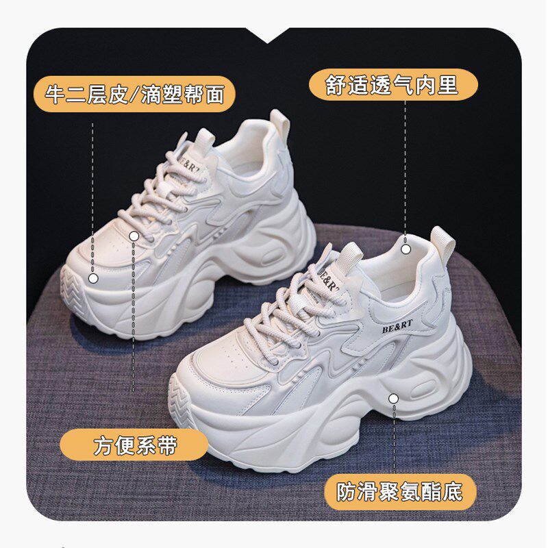 内增高老爹鞋女2025春季新款8cm白色运动鞋松糕厚底休闲女鞋