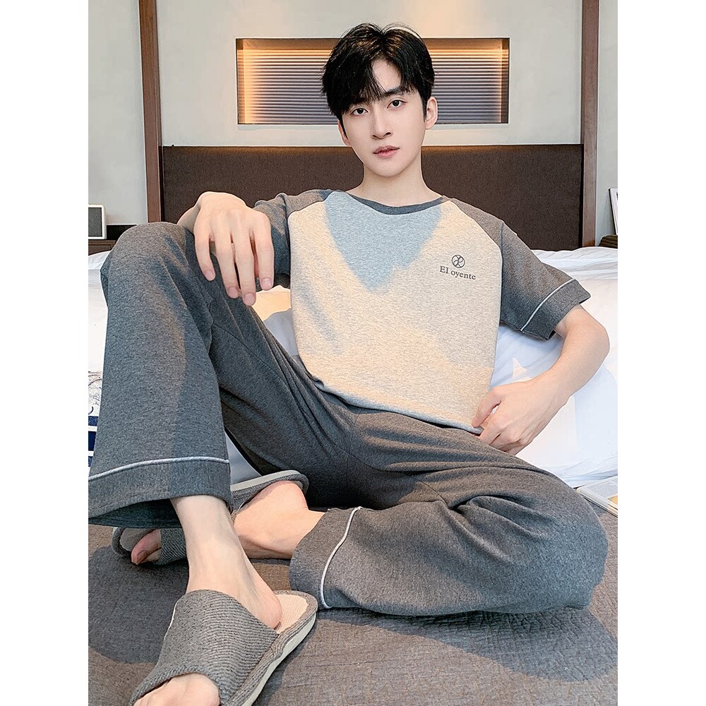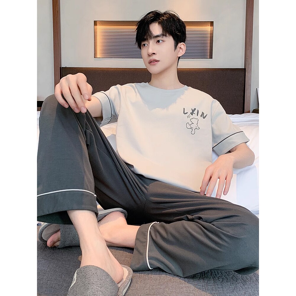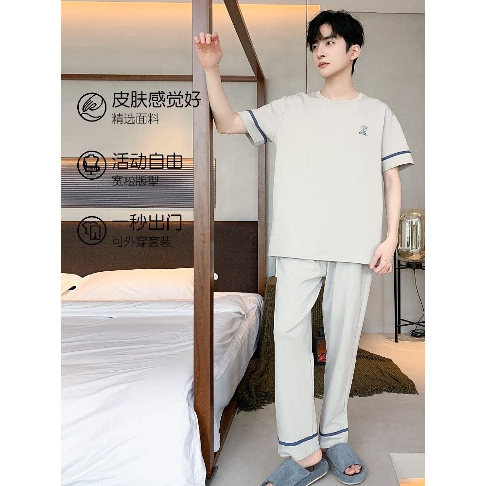 男士睡衣男款夏季2026新款短袖长裤干练夏天青少年纯棉家居服男生