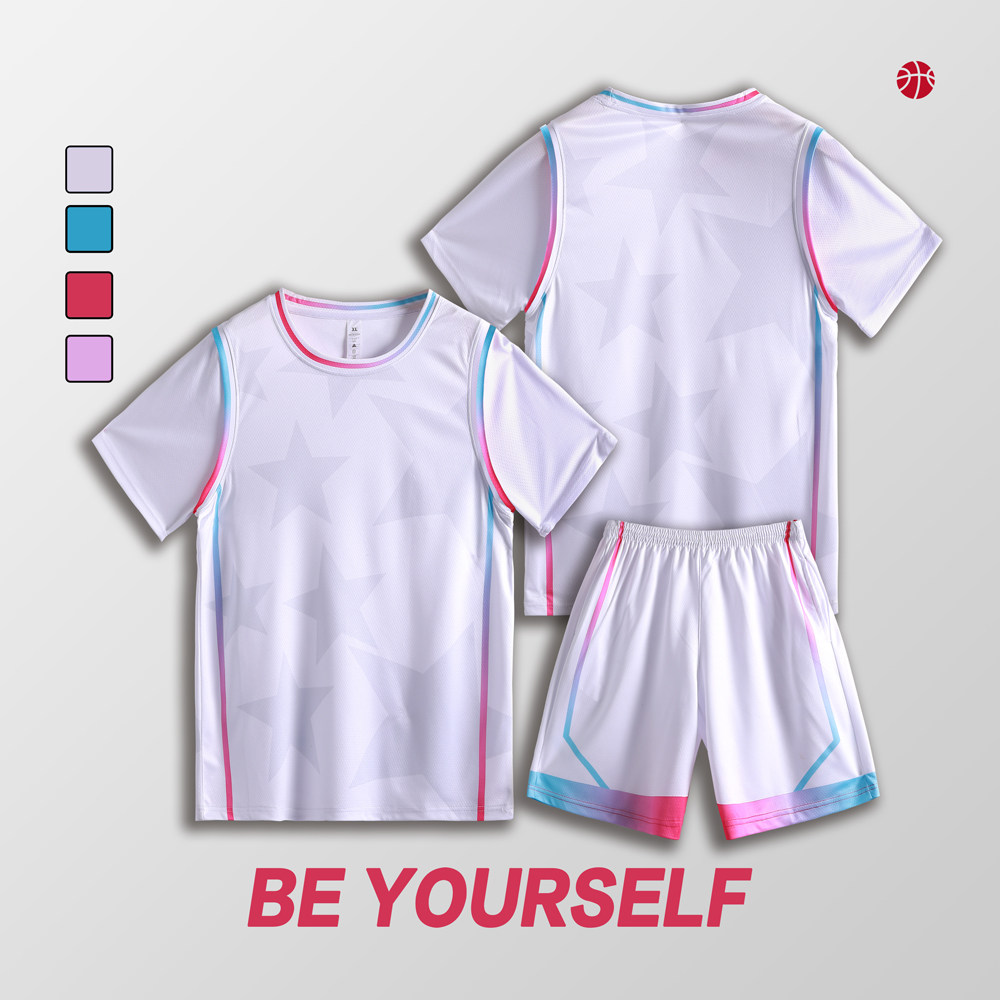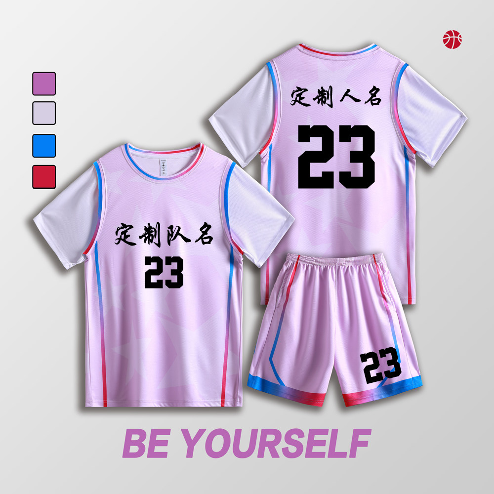 女款女生女童学生假两件短袖篮球服运动健身套装定制印刷B008粉色