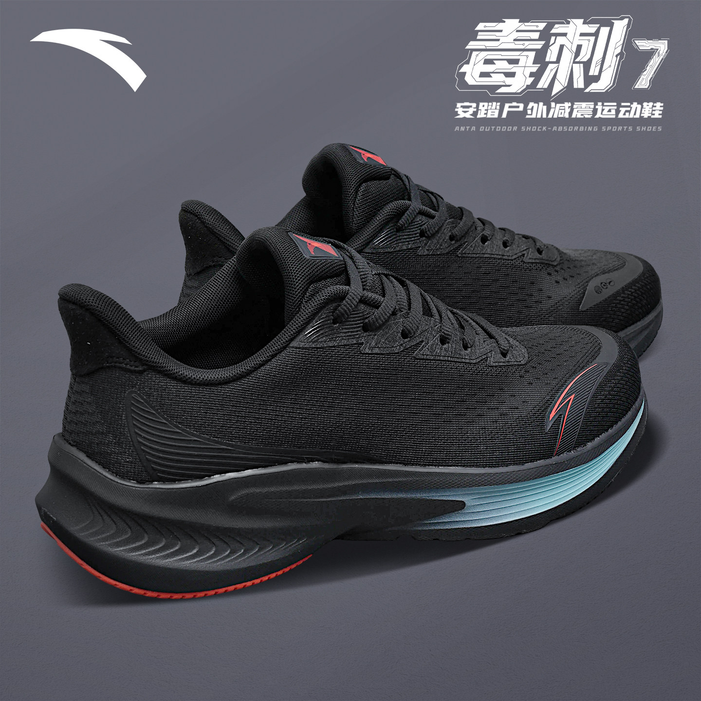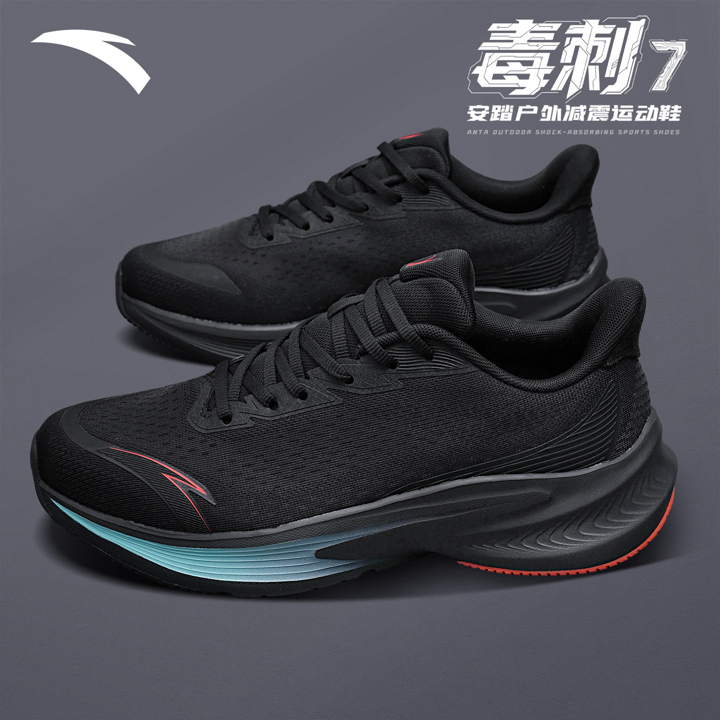 安踏男鞋跑步鞋2026新款春季软底跑鞋减震青少年毒刺7黑色运动鞋