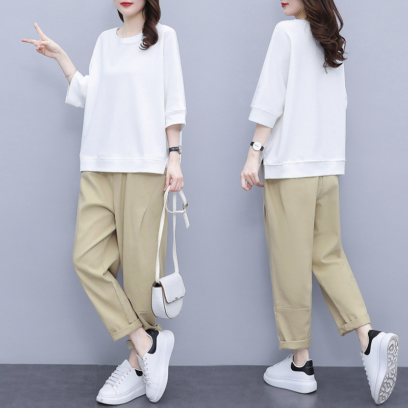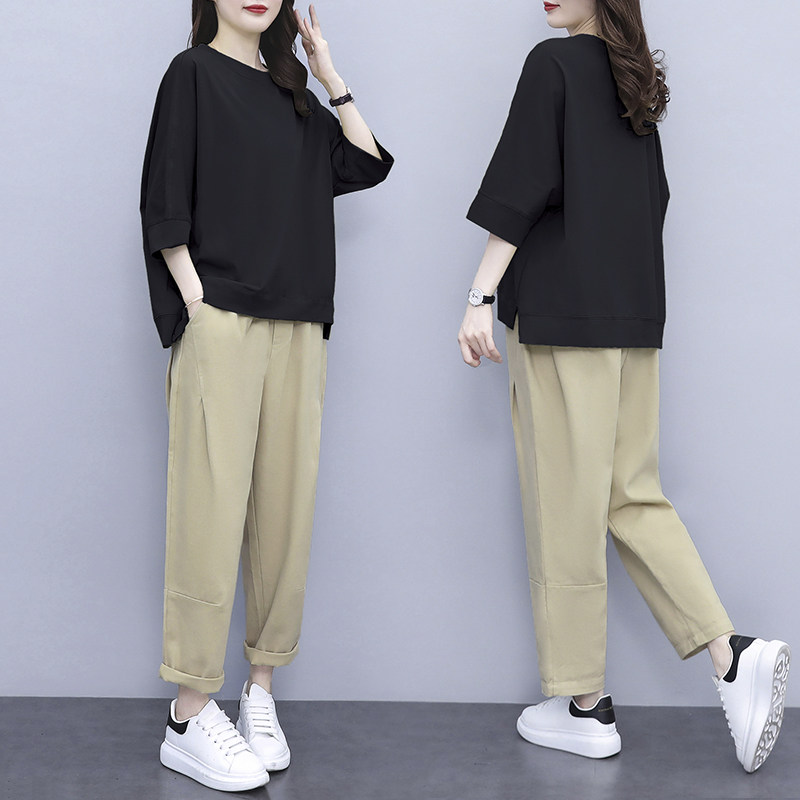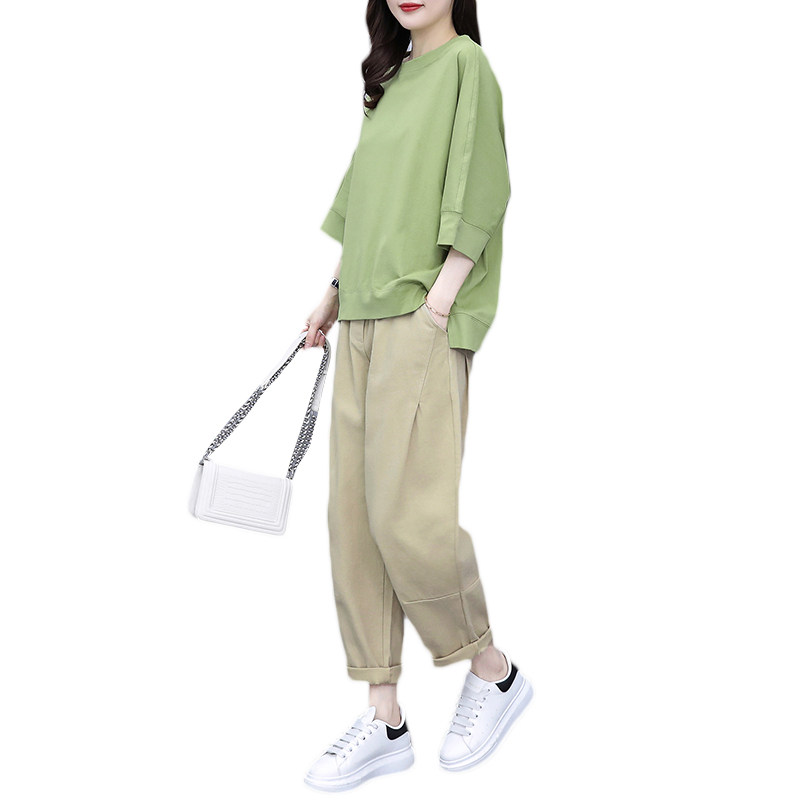 纯棉大码宽松胖mm微胖遮肉套装2026春夏新款纯色显瘦短袖T恤女装