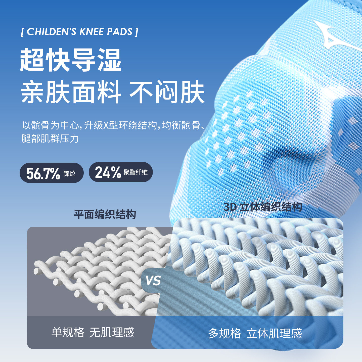美津浓儿童护膝运动男女膝盖关节保护套跑步护具篮球羽毛球防摔
