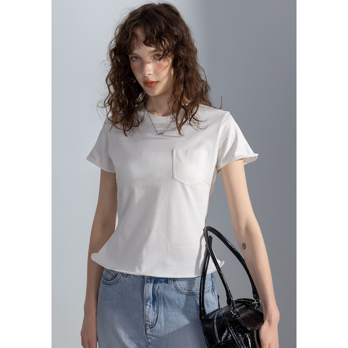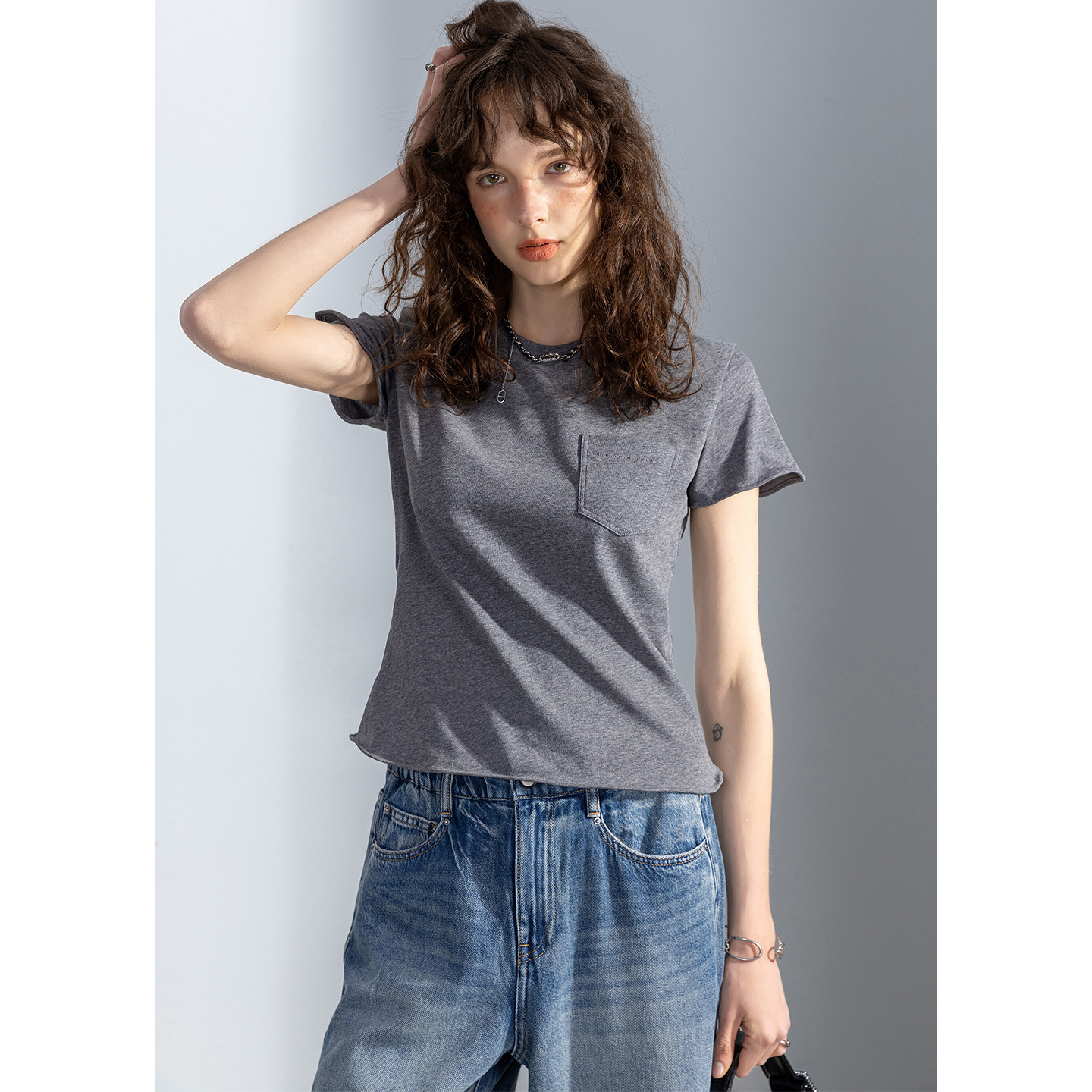 短袖t恤女款2026新款夏季显瘦纯色设计感小众短款纯棉正肩上衣