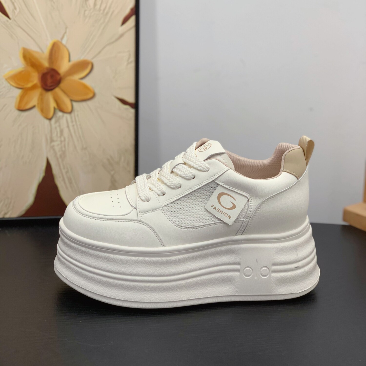 镂空网面真皮小白鞋内增高8CM厚底松糕鞋女2026夏季新款休闲板鞋