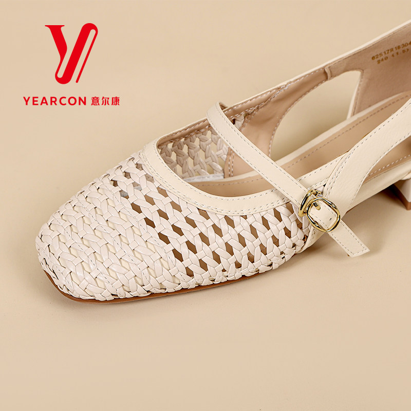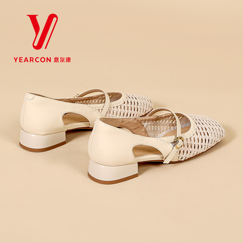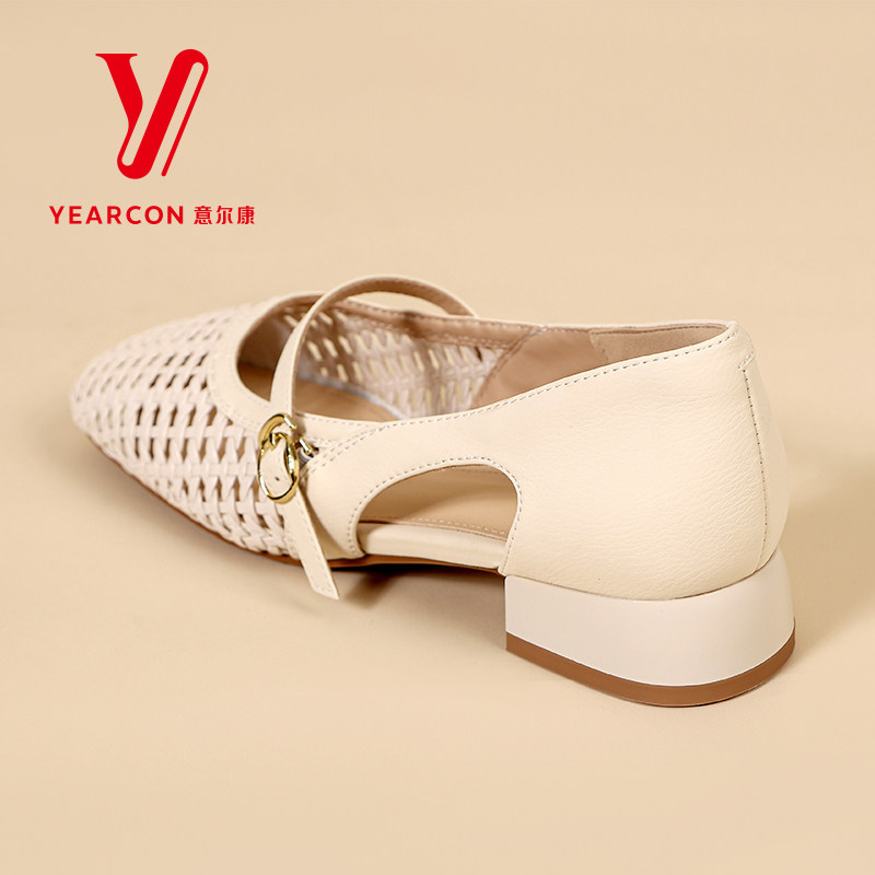 意尔康女鞋2026新款夏季凉鞋编织镂空玛丽珍鞋粗跟软底方头单鞋