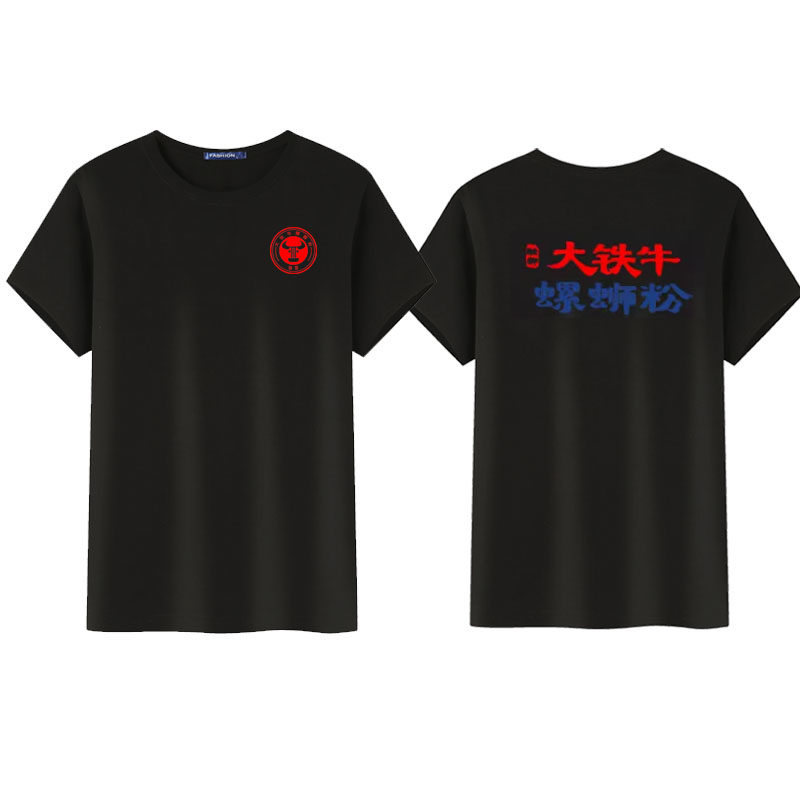 夏季融柳大铁牛螺蛳粉工作服短袖围裙连锁小吃店纯棉T恤定制logo