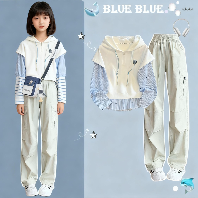 女童早秋穿搭一整套卫衣2026新款今年流行爆款中大童巨好看套装潮
