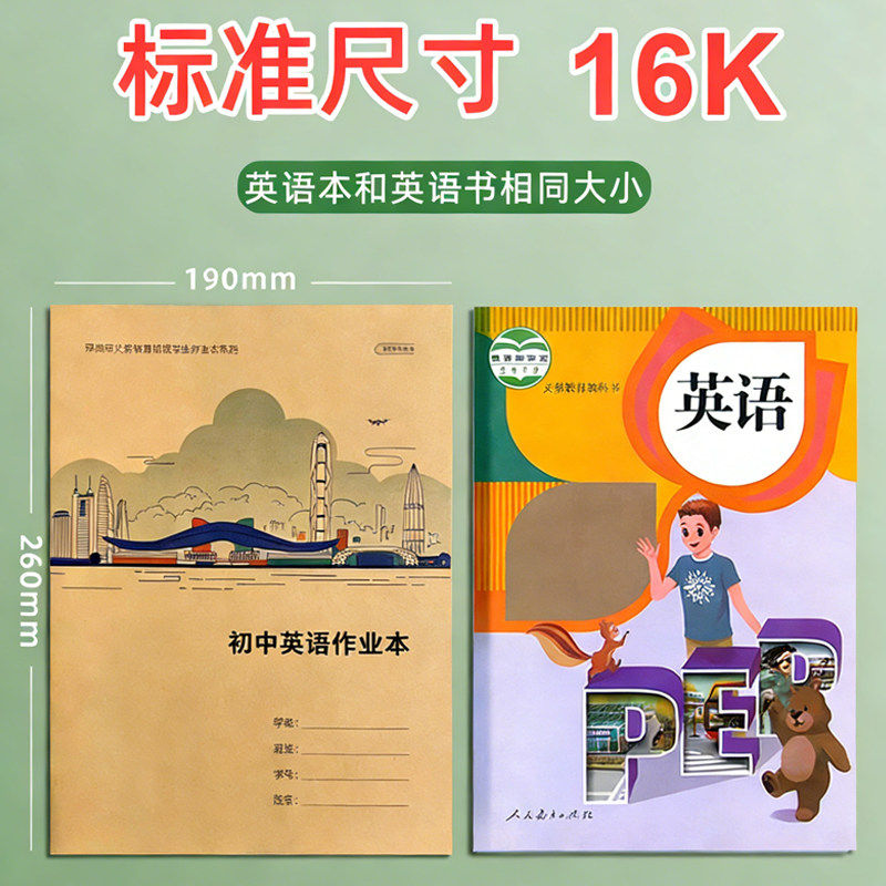 深圳发货深圳2026新款16K初中英语作业本牛皮纸作业本7-9年级初中