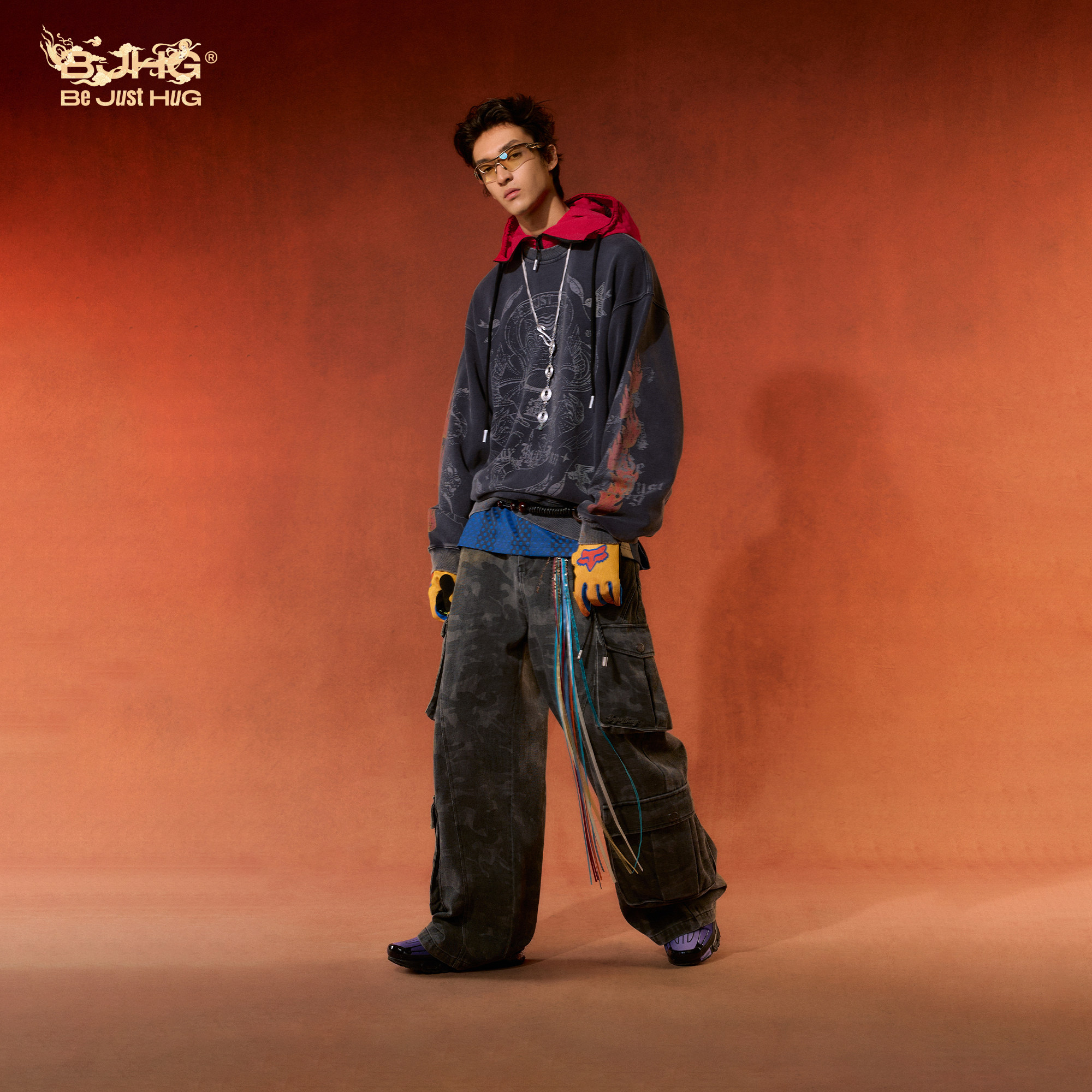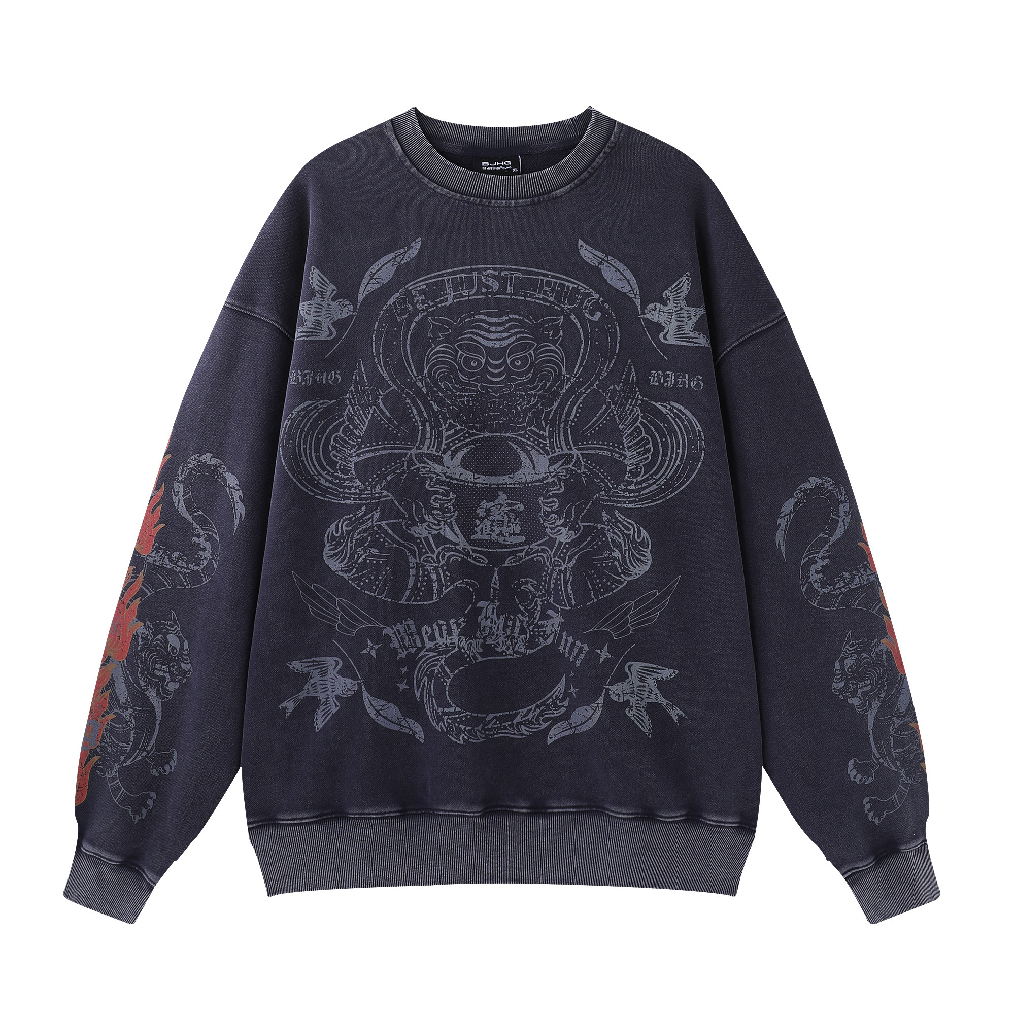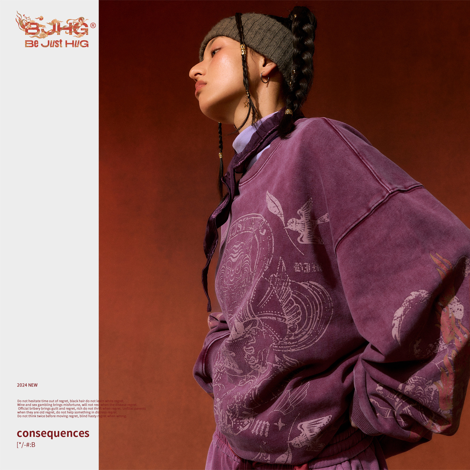 敦煌联名BJHG不计后果美式圆领卫衣男款春季新款潮复古宽松上衣女