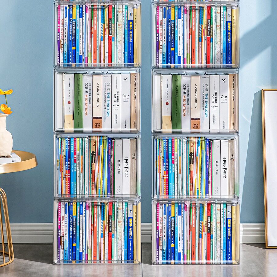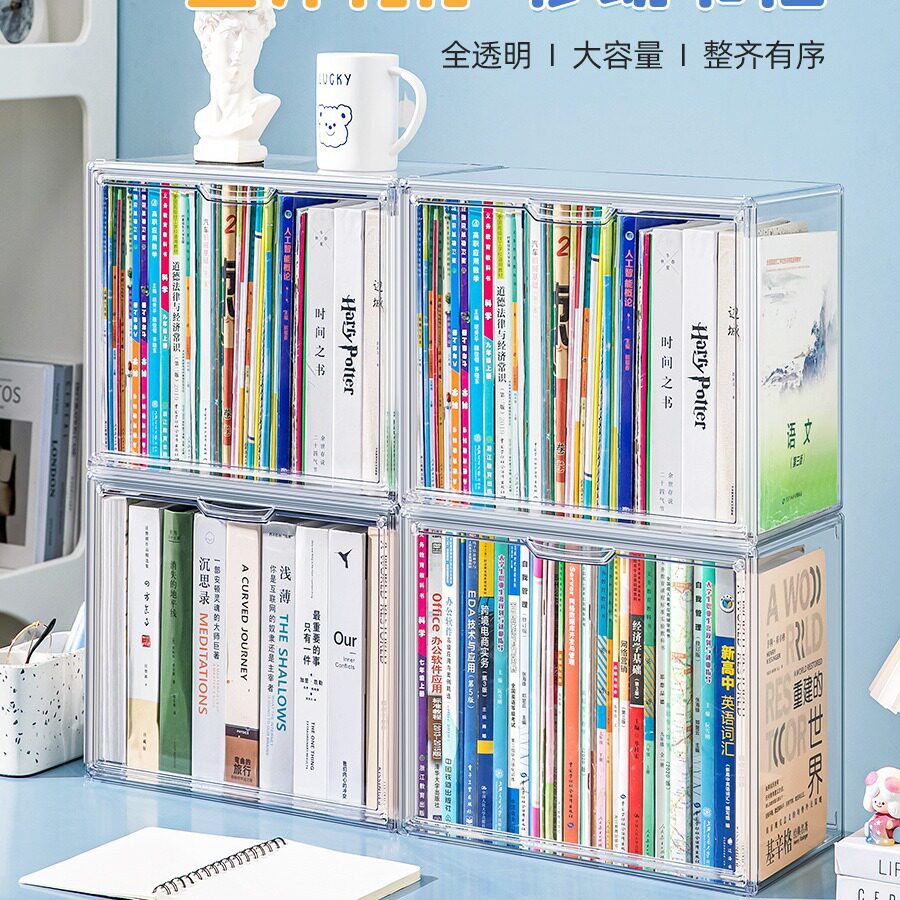 书本收纳盒儿童绘本牛津树书柜整理a4透明防尘书架桌面收纳架
